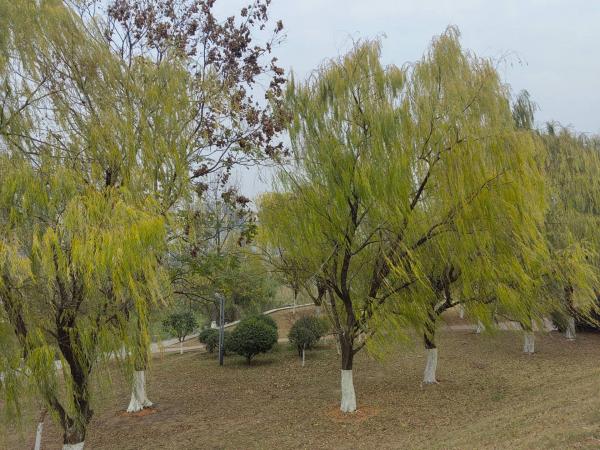 河堤岸上的柳树 随风轻舞 曼妙