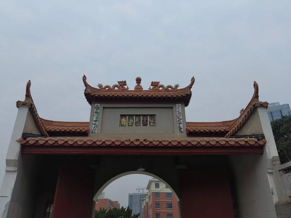 沿着斗门路上坡即可看见山门