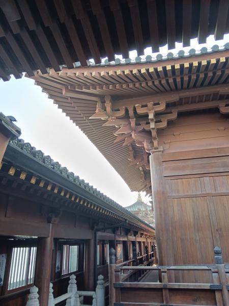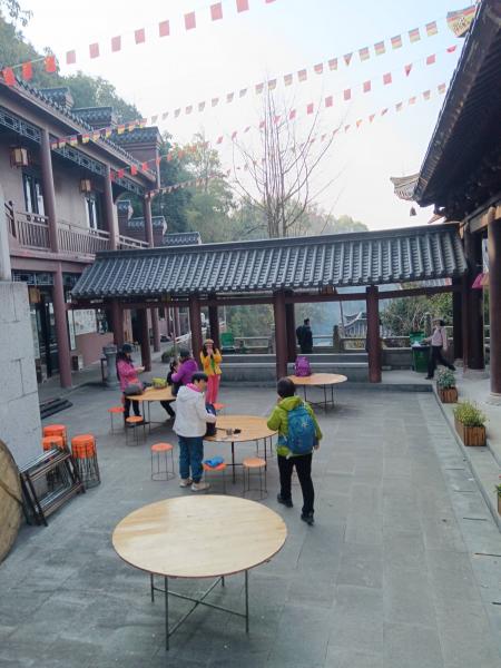 木制结构的寺庙,古朴庄严,岁月如梭,长廊记载。我们是热闹中走过,探寻无痕,静悄悄快速下山,不给山中添堵。有一位大胆贪玩的宝爸,滑板带女儿,快乐如风,呼啸而行,儿子跟在后面,滑板当车独行。快乐的笑声穿梭在马路中间,行人夹到看行。