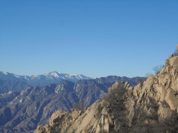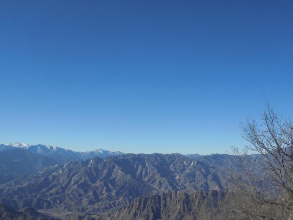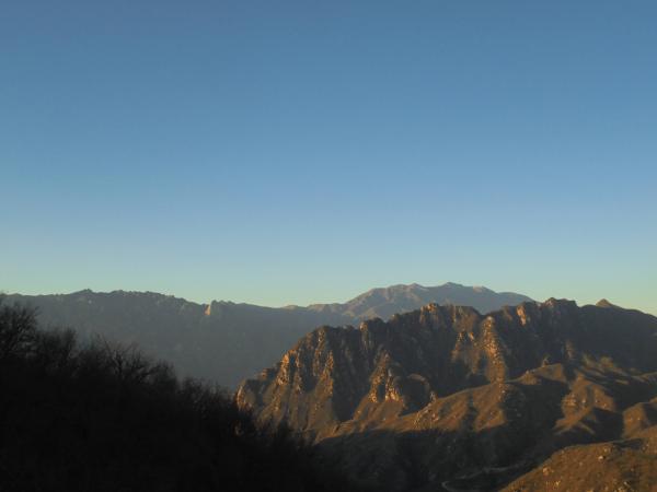 ----12月22日,参加㞱㞥岁岿社海运队抓角山-金华山-蔡树庵长城活动,早乘中巴车至南湖村上山,见冰瀑、越冰溪、上陡沟、攀石脊登抓角山,下岩崖、寻密径、过草坡、谒铁塔至金华山,下午在蔡树庵白家口垭口西侧发现一段中国长城遗产网未编号墙体,沿山脊越过紫荆关断裂带后,遥望蔡树庵雕花长城,在一片夕阳景致中,借砂石小径下撤至蔡树庵村出山。此日华北处冷高压控制,冷空气过程进入后期,早晨寒冷非常,而中午前后则已有些许暖意,远道而来的一行人,重返于暗色与光明的二分世界中,从深邃的幽谷启程,洞望、追寻,向光明显隐之处,凭借上方的力量,越过晦暗中的一切,在那棱角分明的山脊线上,来到归属于光明的领地,在微暖的光线中,张开双臂,感受者走出了二分世界,但就此远望而去,一片白海,荡漾于西天的青峰以上,二分世界中的秩序,仍在另一个方向,创造着,二分世界中的神明……