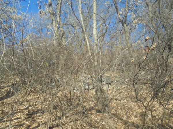 7.小麻山西北侧山脊多岩崖、荆棘,行进艰难,走友遂选择原路回撤小段后,向左无路下切,来到山脊东侧较平缓的乔木林后,再左转往大小麻山垭口无路横切。据早年卫星遥感影像记录,垭口内部开垦有小片神秘田地,或为不法分子种毒之处,而大小麻山之山名,亦不知和过往的种毒历史有何关联。被旧县镇禁办查处后,田地撂荒近二十年,如今其景象已与原生植被没有明显差异。