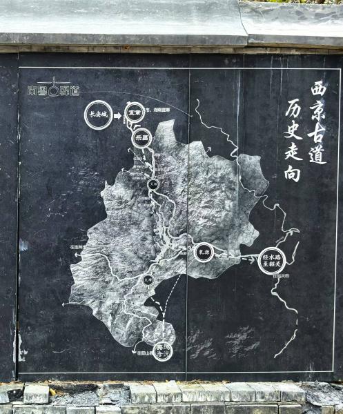 乳源西京古道路出县城南门,经大富桥上腊岭,到小梅关后折而走北,翻越县境西北部的崇山峻岭,到湖南的宜章,北上西京长安。
