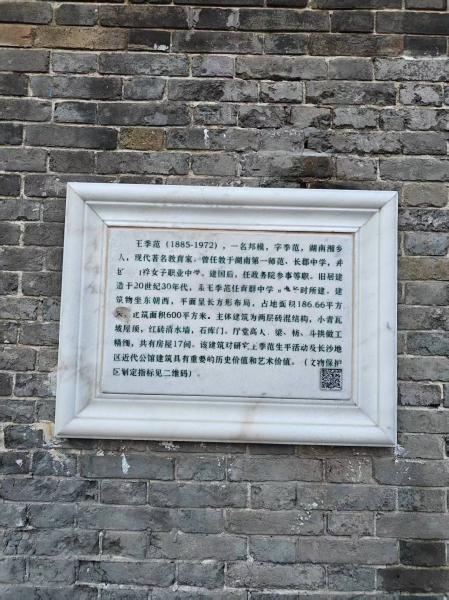 越过马路,去到长沙市道教协会所在地东岳观,发现是一位女施主在做求子的法事,噤声推出后,往西又寻到了王季范故居。王老是毛大嗲的九哥,也是毛学生时代的恩人。可惜季范老先生家人丁不旺,重孙女我认识的。外交部副长王海蓉就是孙女,可惜没有结婚。如今,这栋房子保留下来了,修旧如旧,只是没有开放。