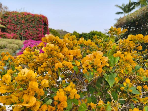 树丛后三角梅的闪耀背影