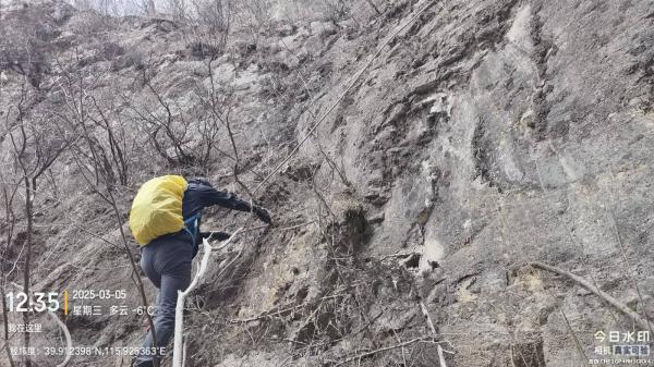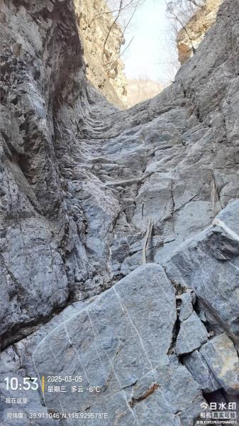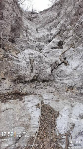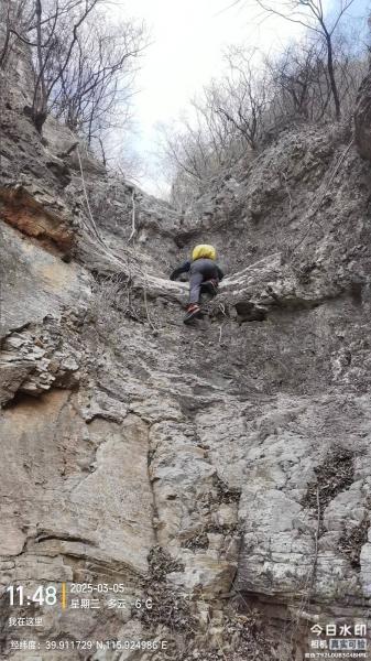 十字道-老虎窖沟-虎耳沟探路-十字道12.18公里,804米爬升。感谢法兰助力示范,要不然就完不成这个线路了。 十字道出发遇到只玩不问队伍三人。老虎窖沟两个壶各4米高,从上往下走不用绳子是没有胆量到底的。 虎耳沟4个断崖今天都有民间英雄留下的缆绳,去年春节和钟山过来时还没有呢。最高一个有20余米高,没有绳子上下除飞鸟能走。这个绳子我也是运好了丹田气才成功的,倒数第二个绳子我是绑在腰上,需要横向移位才有踩点。此生建议只走一次不可复制。