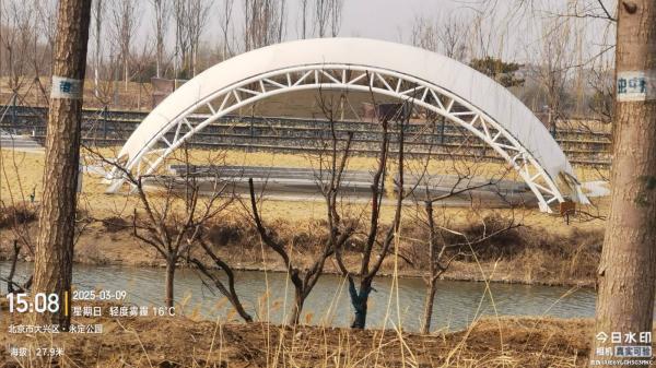 永定公园一片新意,但老树稀少,有棵大柳树应该是爷爷辈分的了,顺着塑胶跑道走了百分之七十五,从东门出去,时间紧张没来的及看螺旋看台。