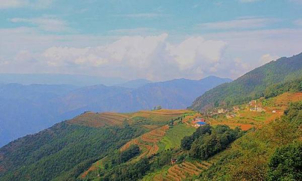 基多的拖支村,一个隐匿于群山之中的小村落,宁静祥和、环境优美,村旁还有一条直插谷底的猴跳峡,今天的徒步就从这里开始,先循着村道下到基多村委会,右转切入田间小道,过大沙地上包谷山,穿过一片密林,抵达法戛王的故城(石城村),不知不觉已到中午,就此路餐,顺路附近逛一逛;