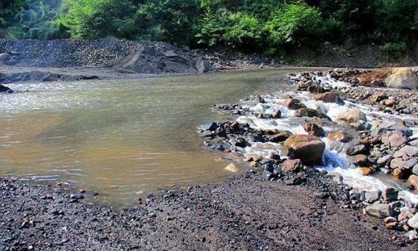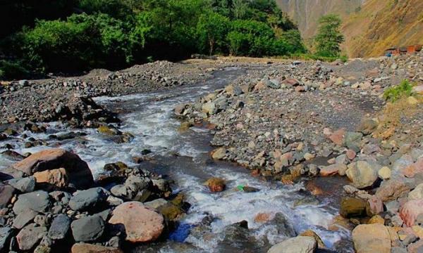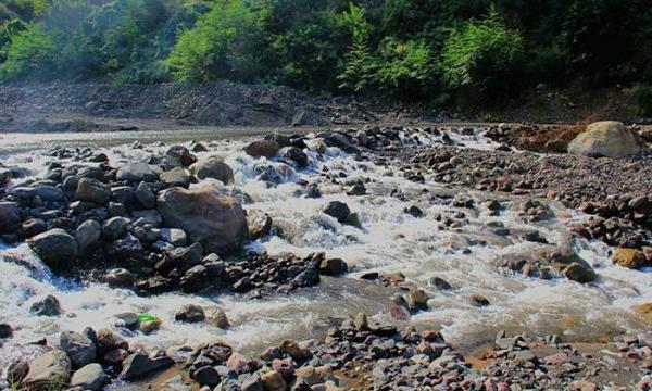 要到雪山必须淌过这条无名小河,轿车就无奈了;
