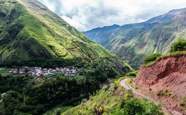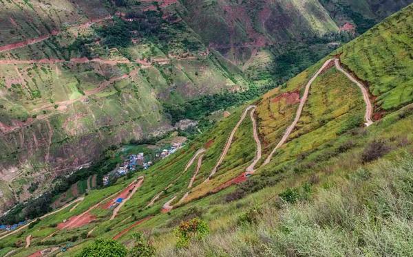 从舍块乡到基多的拖支村25公里山路,过了这里就是著名的挂壁公路(三十三道拐)起点;
