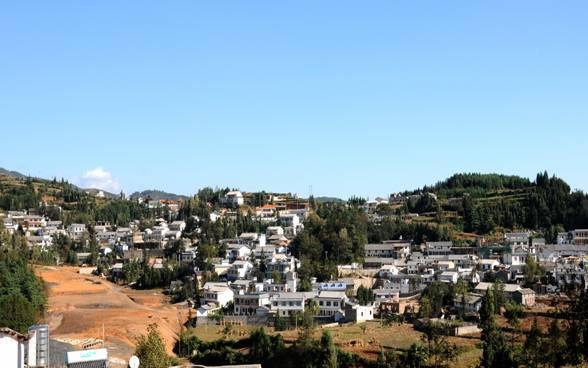 雪山乡也修在半山平台之上,只有一条街道,右边房后便是悬崖,镇上建筑不错,经济发展看来是实实在在;