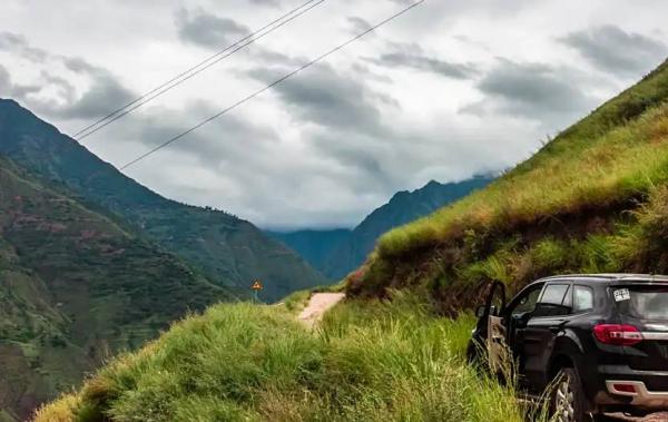 山路异常陡峭、狭窄,只容一辆车通过;