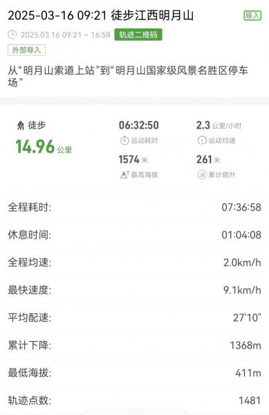 专业人士两步路的轨迹跟我所行走的路程相差很远?但是实实在在有1368米的下降。
