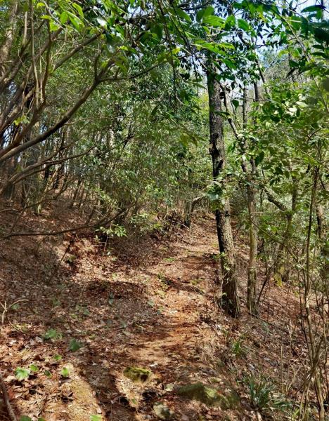 开始走了一段五星级松针路,走上去柔软而舒适,仿佛大自然特意为行人铺设了一条天然的地毯。松针层层叠叠,厚实而富有弹性,每一步都带着轻微的沙沙声,仿佛在耳边低语,诉说着森林的静谧与悠远。