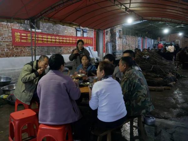 经过云台山盘家村瑶族村寨时,我们被这里浓郁的民族特色木屋建筑和原始松林吸引,临时决定下车徒步游览,碰上了一群植树人,攀谈上后,我们的厚脸皮症发作,问是否可以搭餐一顿,没想到他们中主事人竟然爽快答应了。