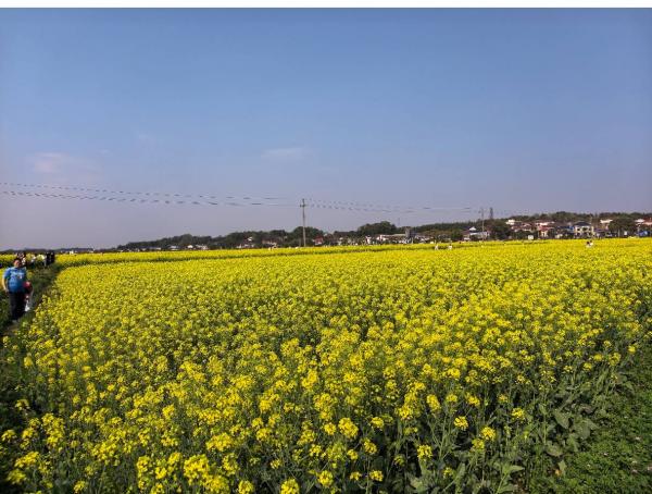 浓稠的油菜花香劈头盖脸砸来。阳光把花田炼成液态的金箔,蜂群在光瀑中穿梭,翅膀振出细密的金粉。花粉沾满衣襟,每一步都像在蜜糖里跋涉。