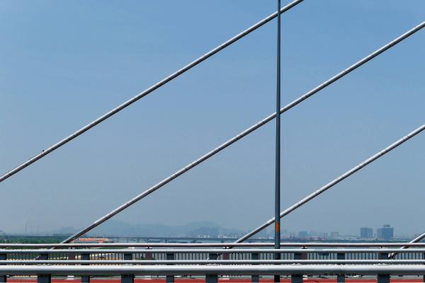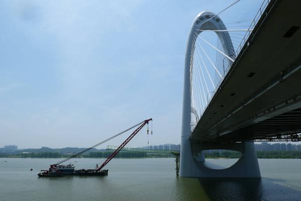像是还没有全部完工。这桥没有香炉洲桥好看,感觉少了点色彩,该刷刷漆。