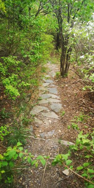 小路有时有树倒下来,有风吹的,也有人砍的,不过路还是很好的,走的人应该不算少。不知道什么时候,石板路又回来了。