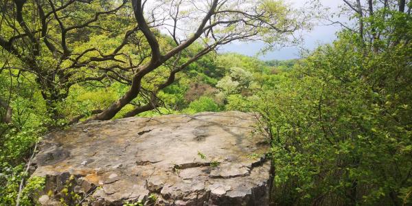 继续在1000米等高线上绕山,风景逐渐开阔起来
