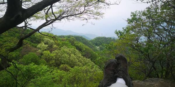 最后一段路上下起了小雨。早上是踏着清晨的雨露上山,中午太阳露了一小脸,下午又乌云满天。这一整天没有挨晒,没有浇雨,舒服极了。