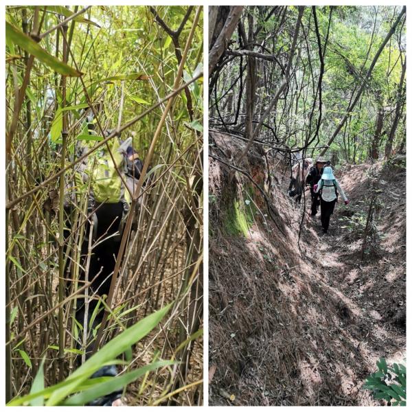 这条穿越线过去是水濂洞村民上衡山的一条山野小道,只是现在走的人少了,长满了植被,加上落叶遮蔽,路迹不明显,较为荒芜。