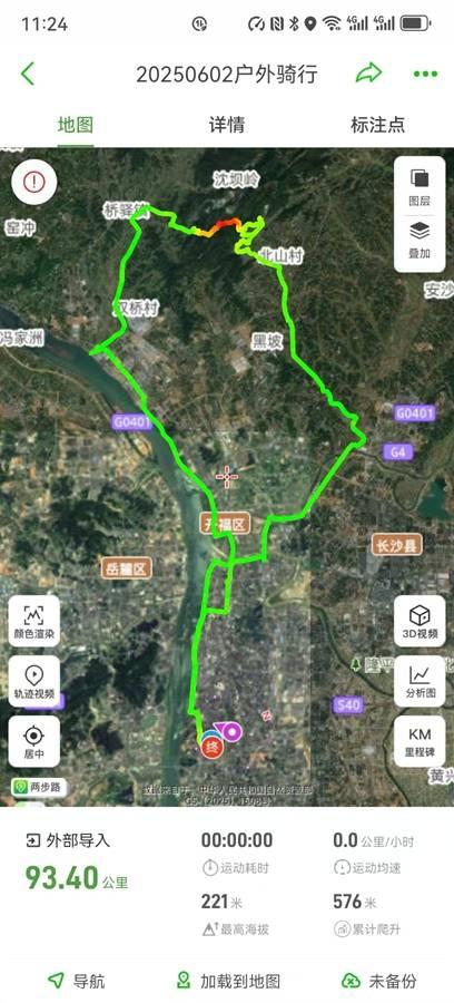 6月2号,气温有点低,我穿上了长袖外套,短裤,1小时后,在开福大道过了捞刀河大桥,暂停,脱衣服后出发,到达白沙河草甸,掏出手机拍照时,才发现忘记了开继续,少记了5公里。