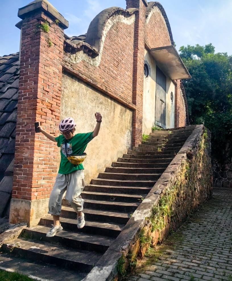 我们骑着,就没路了,趁机补水,我直接在水龙头下补水。