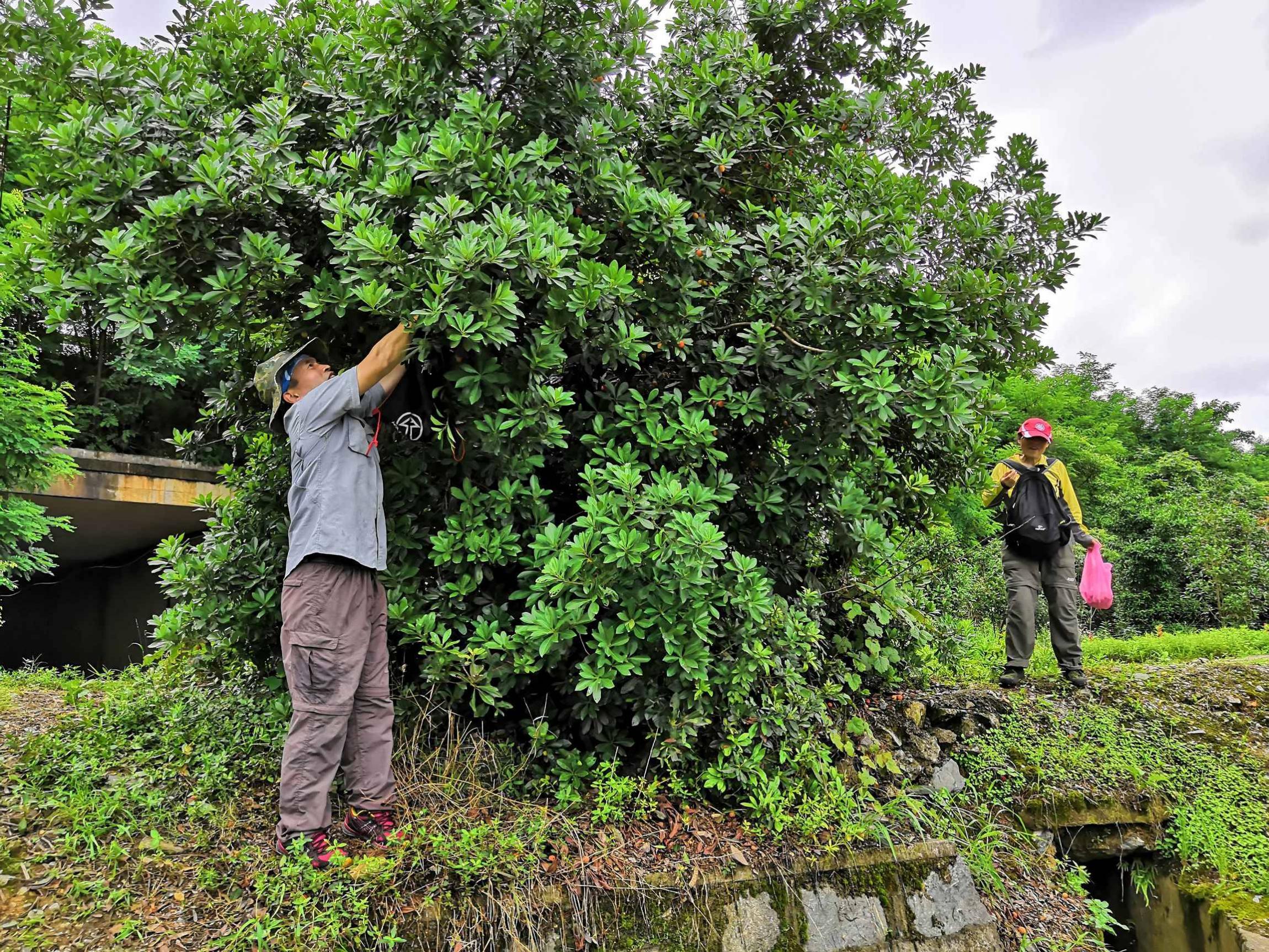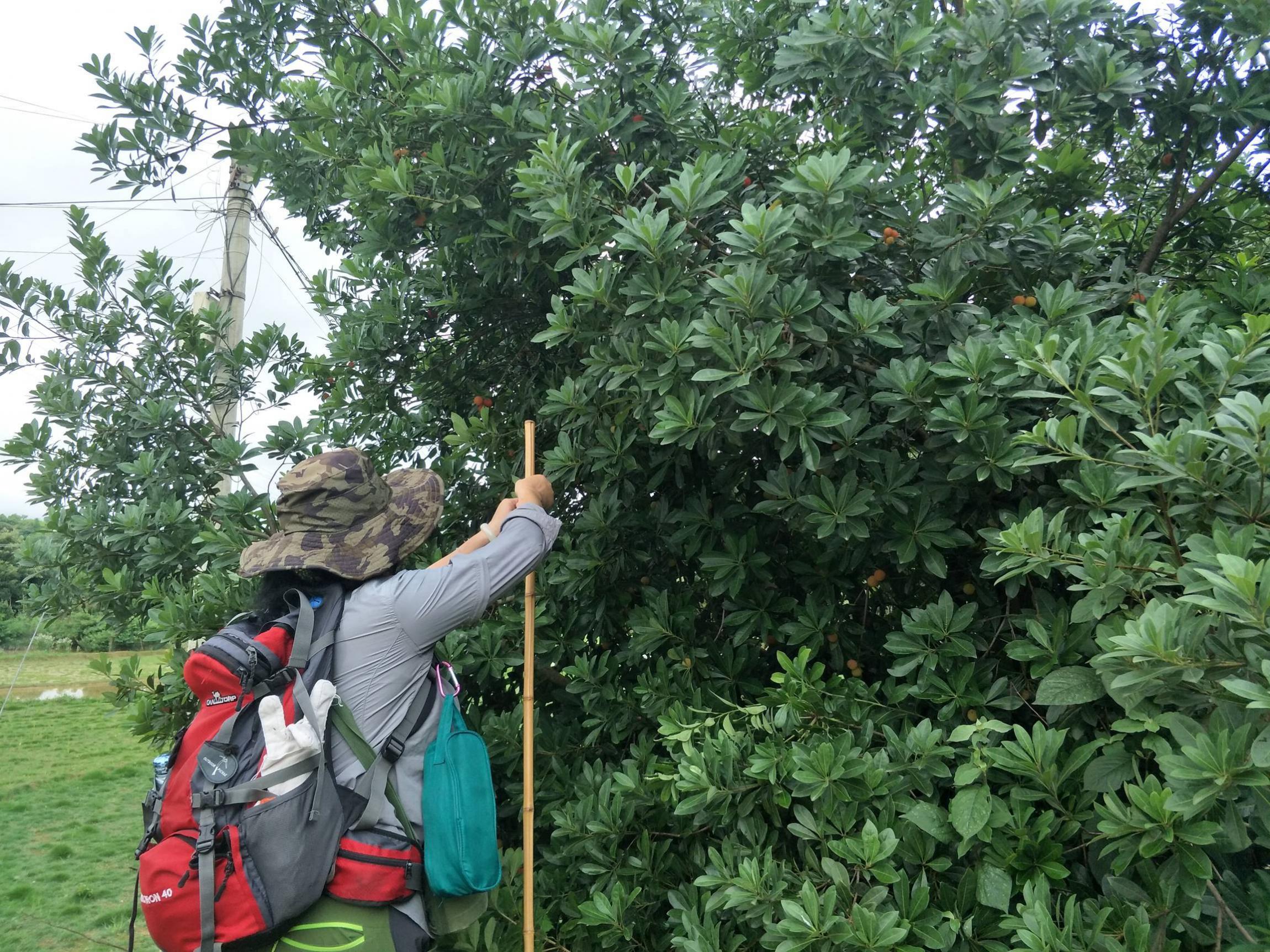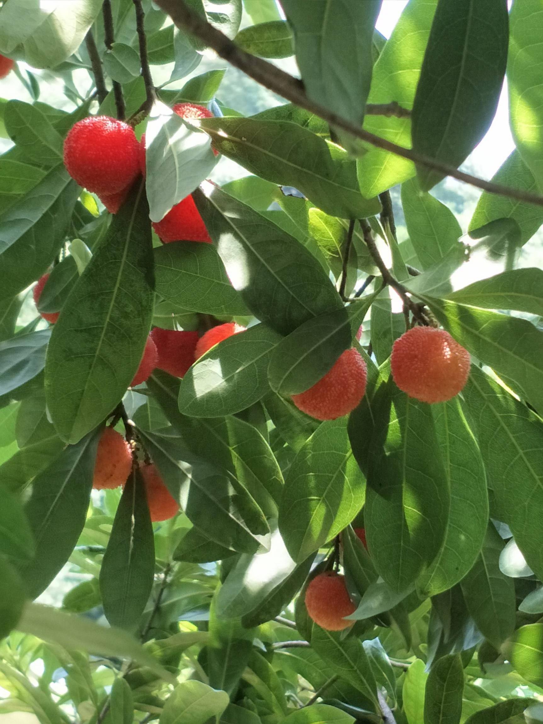 线路是走腊树坡上防火道,在九子岩下遇到一颗硕果累累的杨梅。