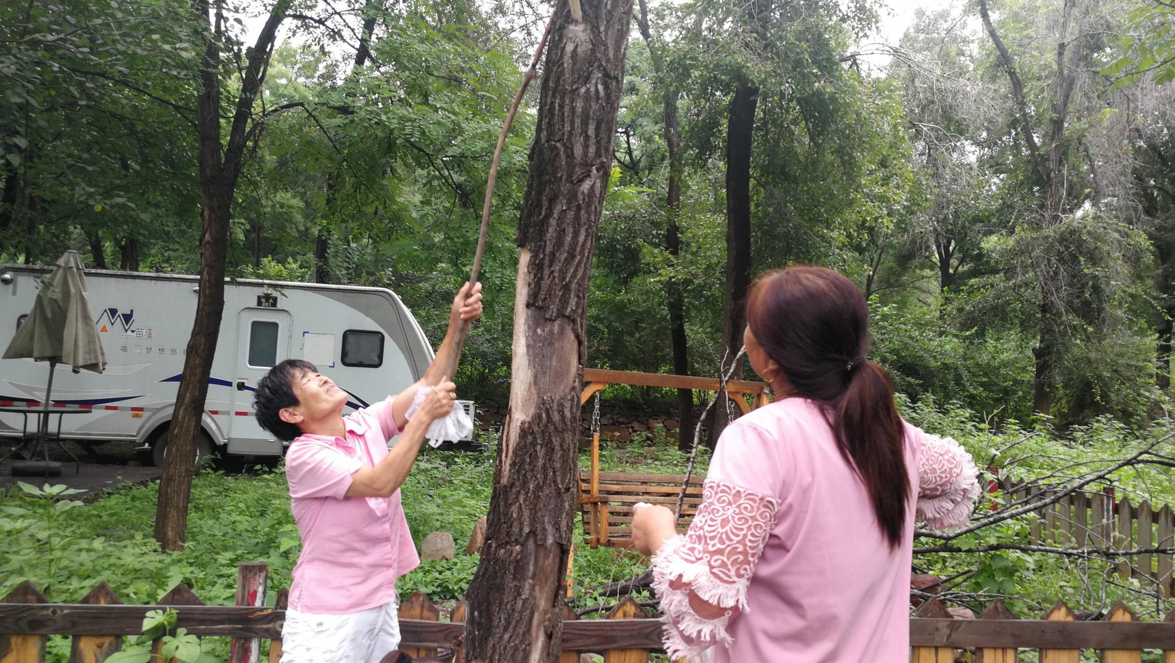 第二次翻过区界,平谷一侧是一个果园,园主骑着电动三轮车,播放着节奏强劲的音乐,逛姐说应该放大王派我来巡山。