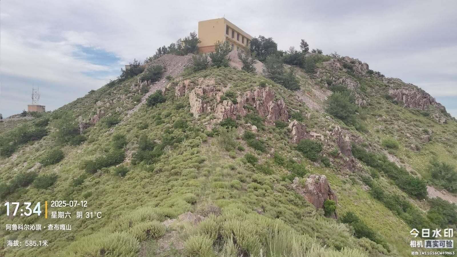 我从查布嘎山西南侧野路上山,路过真正玫瑰丛,花可以生吃的。此山顶两层楼房已经废弃,据说原来是搞信号接收的。