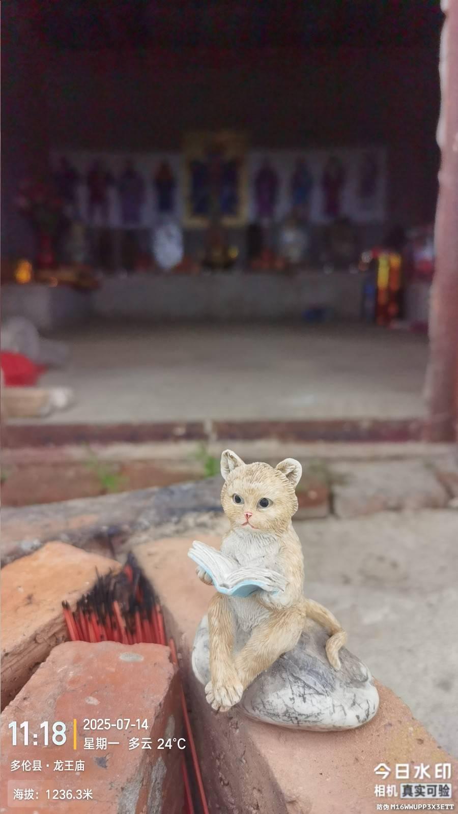 蔡木山乡龙王庙就在路边,庙背向公路朝北开门,房高约2米,占地面积应该不超过10平方米。门也就一米高,进入需低头,庙里面没有实体雕塑龙王塑像,而是一张画像。里面有供奉的香火和大量瓶装矿泉水。门口有蜘蛛网,我胆小没有敢冒然进入。