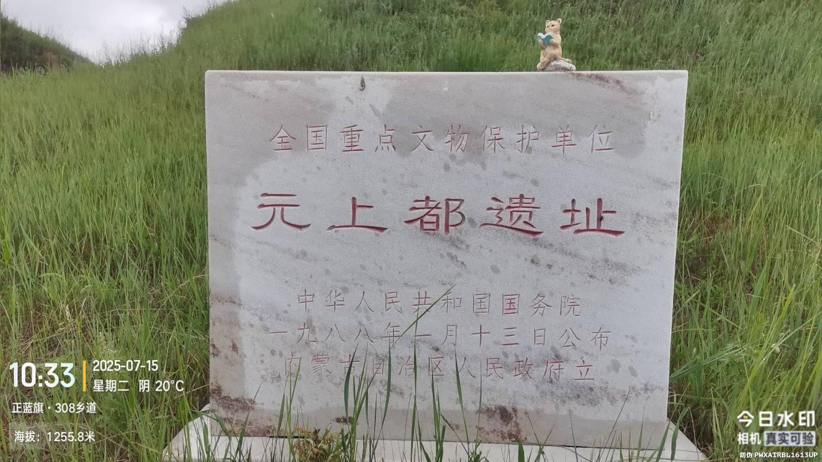 今天是7月15日,后半夜就开始下雨挺大,早晨一度犹豫是否能成行。5:49果断冒雨出发。6:15走到多伦汽车站。买了一张7:35到上都镇的2路公交车票,10元,半路下车不减价,因为没设站点,奇葩的是司机吸烟,这个车其实在城里转很多站点,汽车站只是过路站。7:55到达元上都遗址路口。一路朝北走,雨是断断续续,伞需要频繁使用,有个老汉主动停车要帮我一程,我好言婉拒了。