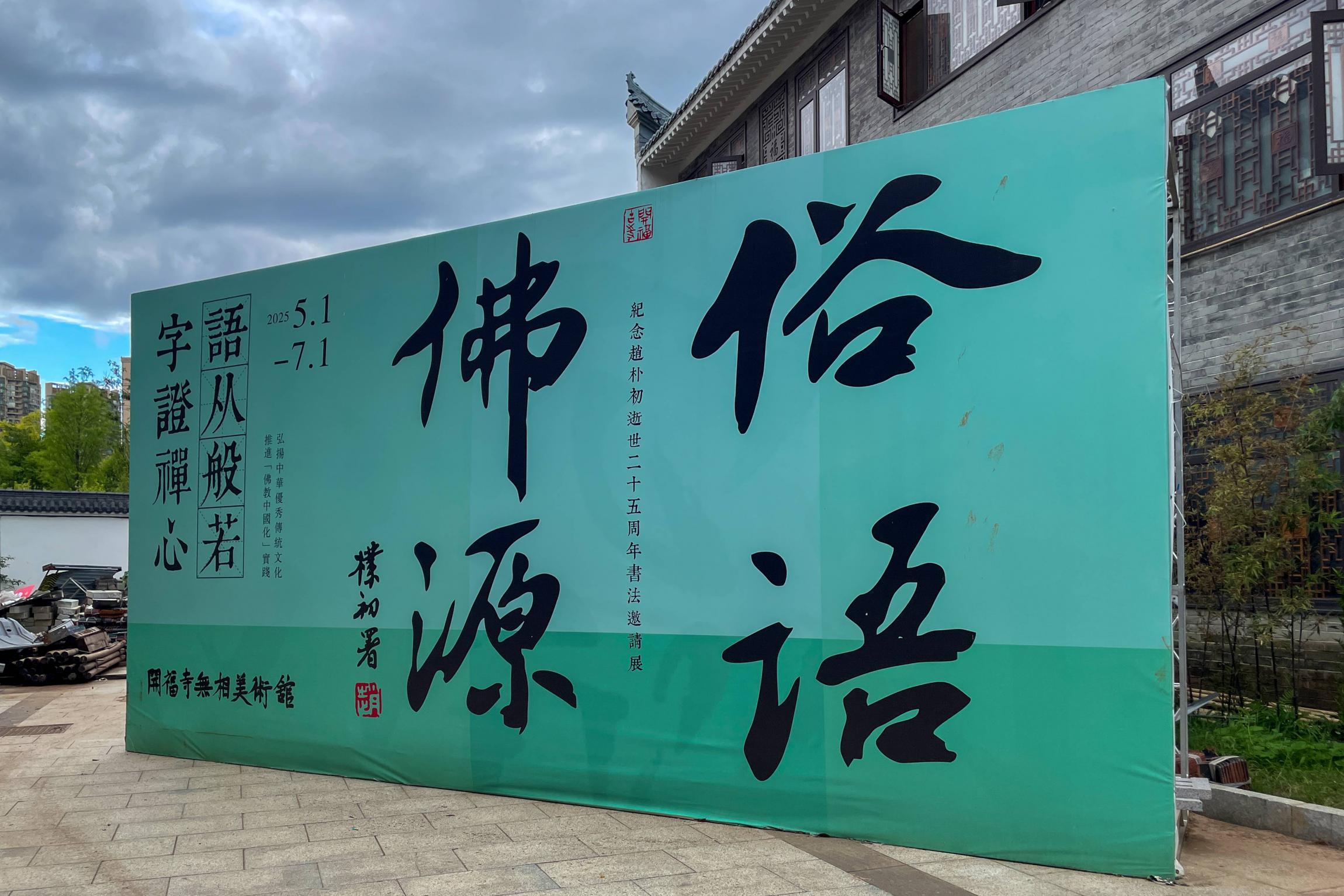 西侧新楼施工中,望进去,上百尊罗汉天王木雕已森然肃立,高高在上俯视下方,可惜光线太暗看不清雕工。心想这里可能是罗汉堂。隔壁是居士楼,有很多体验项目,光电闪烁,最热闹的是抄经处,人满为患。有个小姐姐趴在经书上酣睡。东北角僧寮活动室,一二楼都布置成了展厅,一楼是书法展,二楼是“古开福寺历史陈列”,不少文物值得一看。