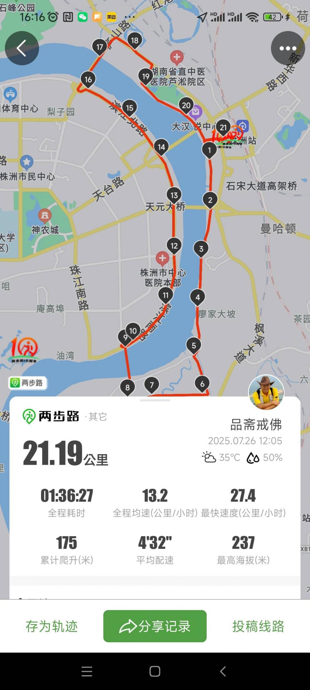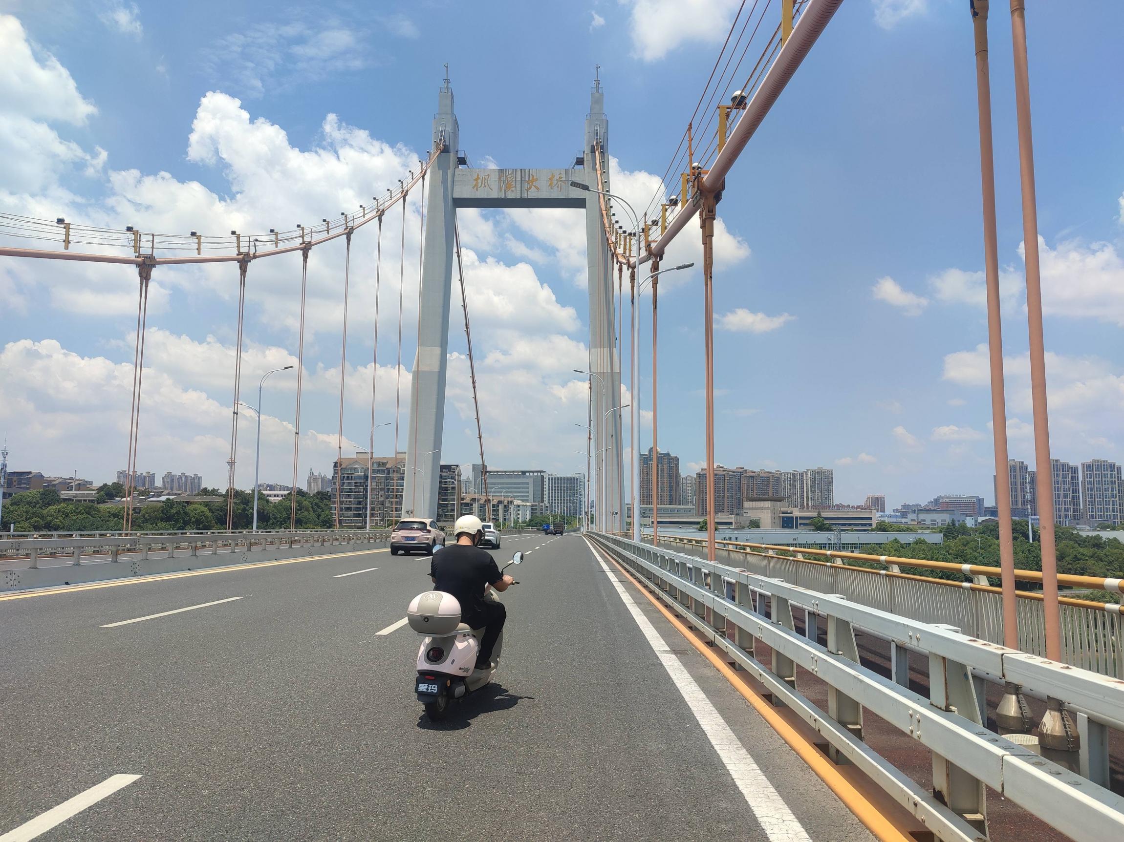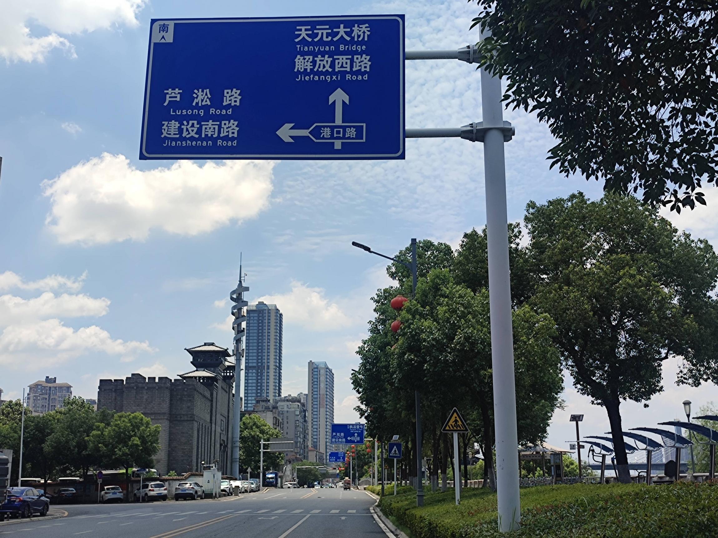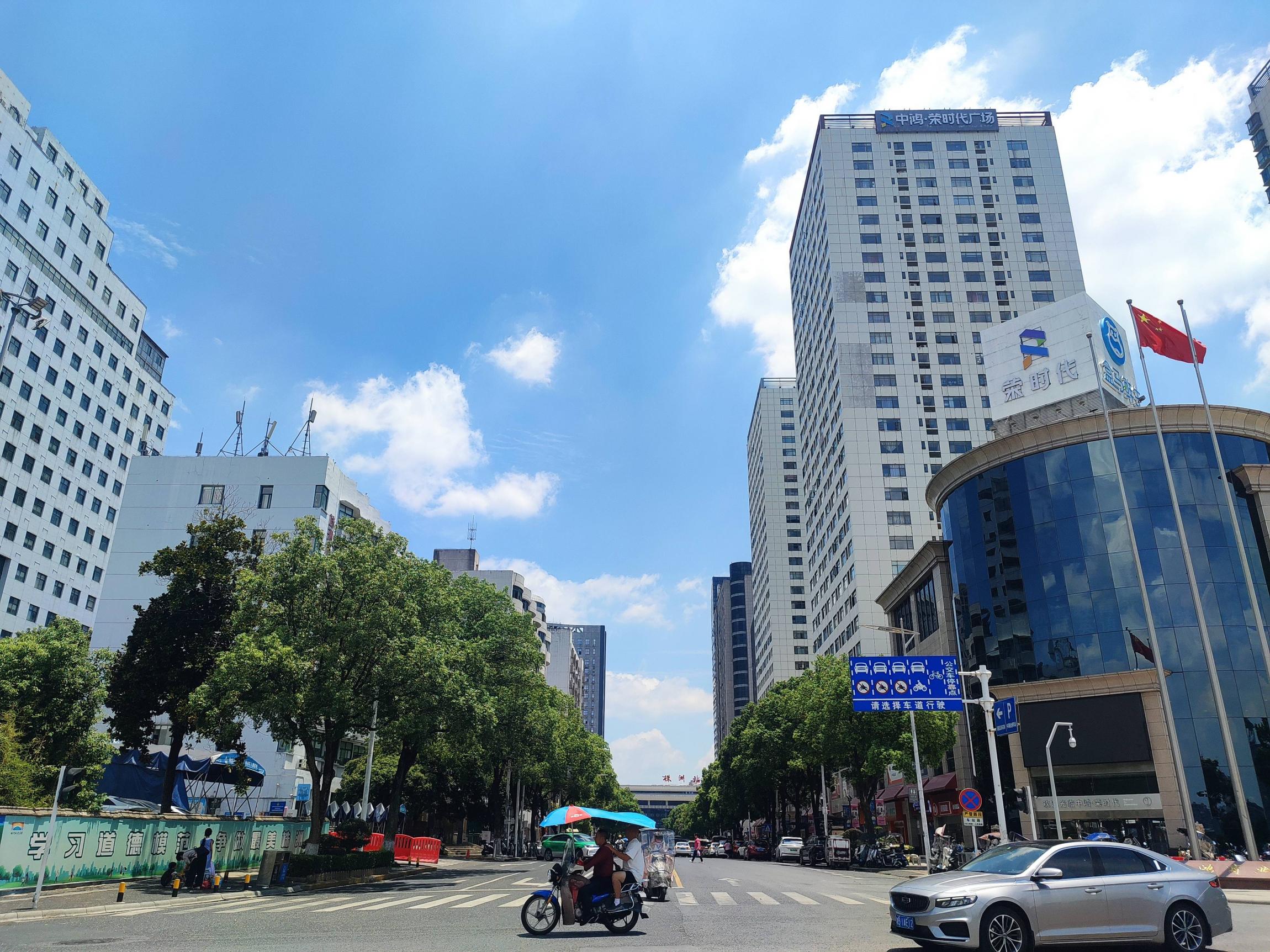 沿湘江边的沿江路顺时针向北骑行,蓝天白云,江风阵阵,体感温度至少45度以上;