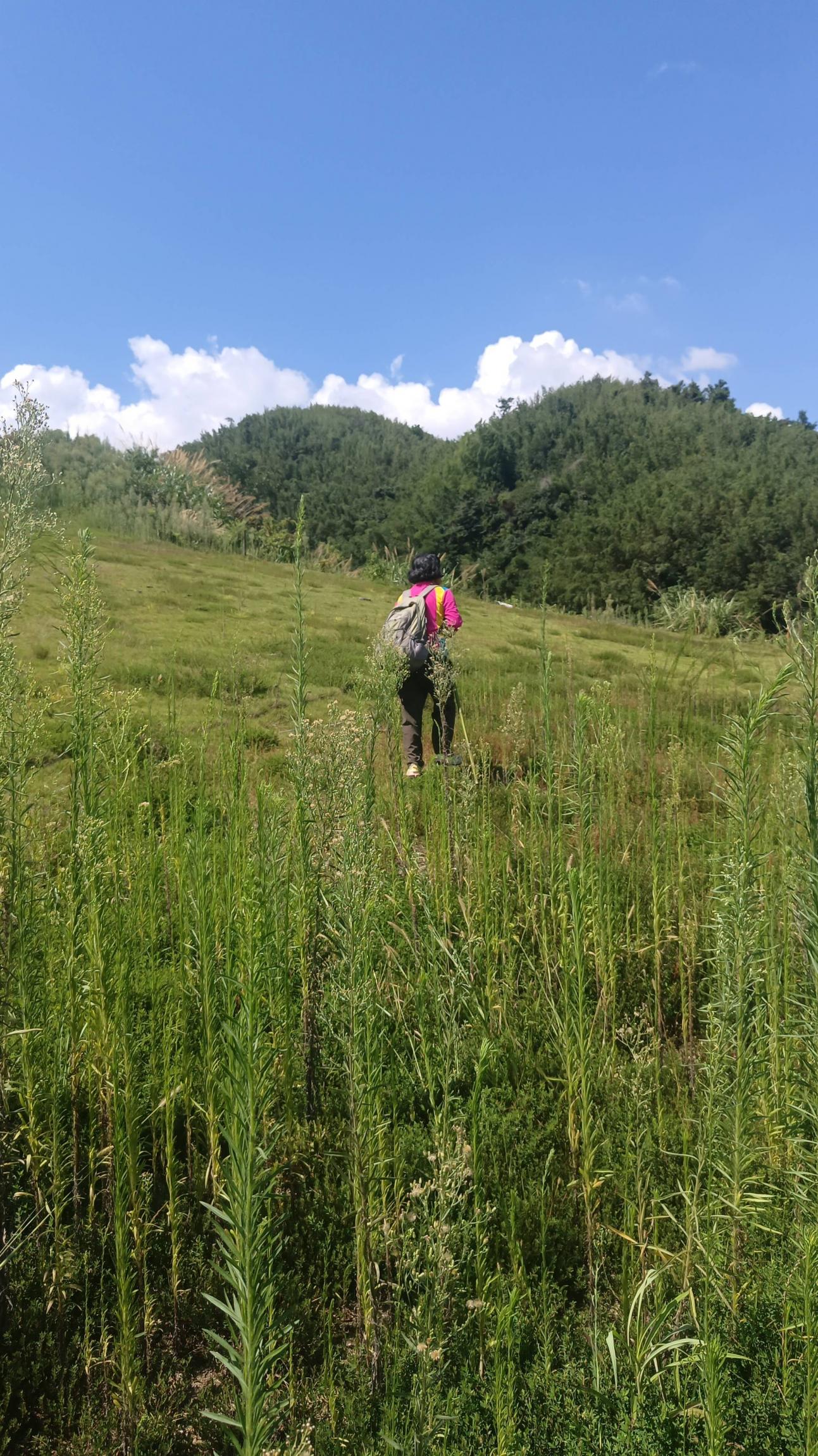 我们不急赶时间,休息次数多,准备走飞翔伞基地,入口处杂草丛生,后半段好走,基地废弃了,只留下草坪,然而就在眼前,就是下不去,绕了一圈下到草坪。