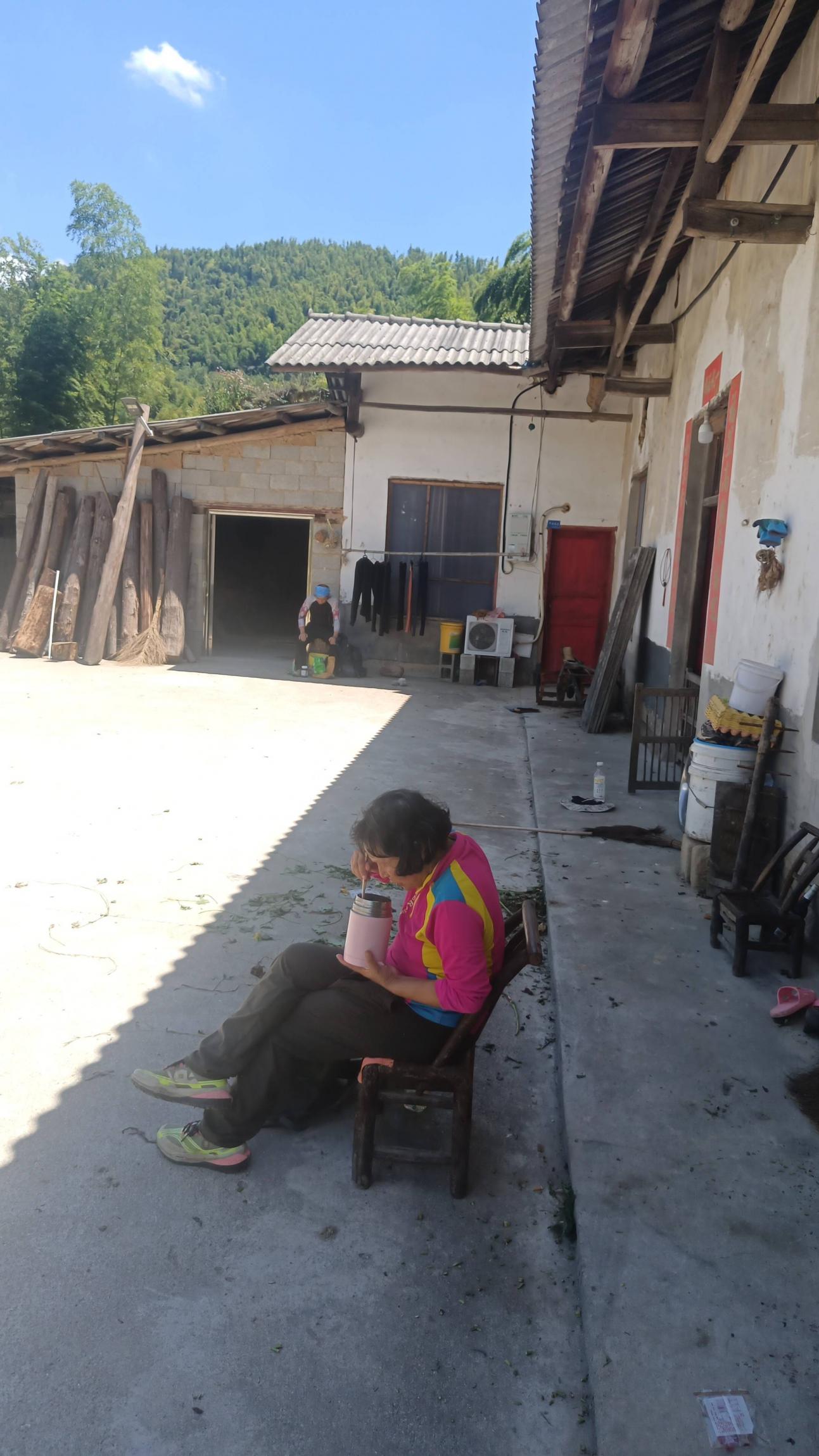 在一户农家补充水,路歺,云端精品鱼刺招待农户家小猫。