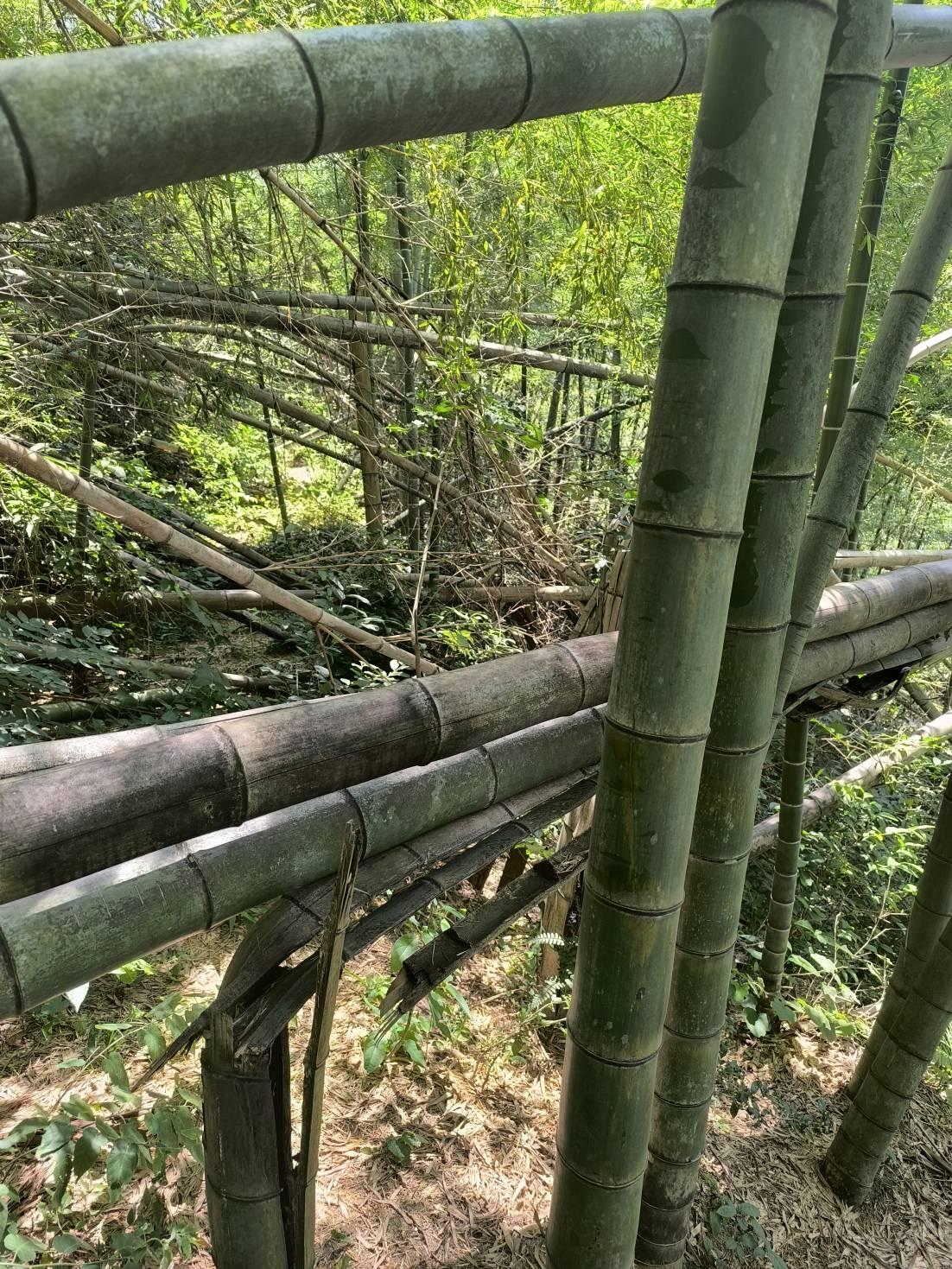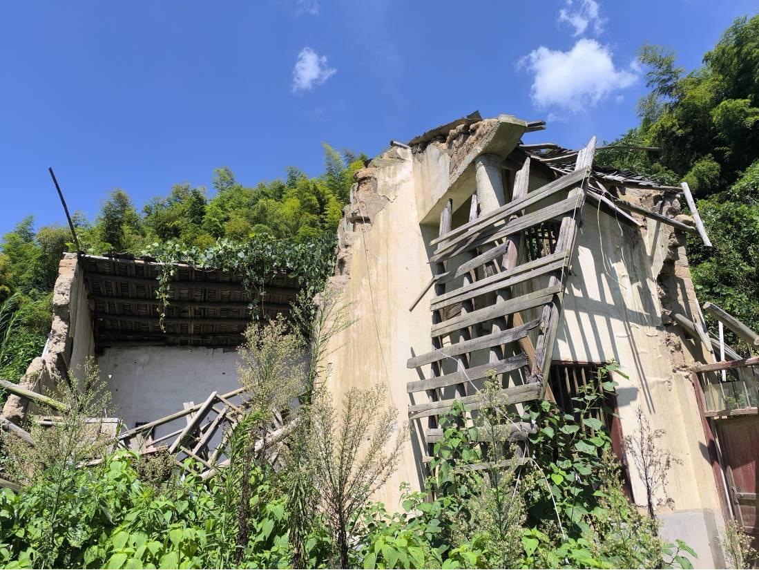 从防火道转腰线,这个位置在地图上叫六头垄,往西南方向可以走到毫粒冲,往东北方向可以走到李羊冲。这一段路线可能冰灾后就很少有人走了,全是倒的竹子,横七竖八的,有的要翻过去,有的只能爬过去,还有各种刺蓬、茅草。中间有一段塌方,看不清路迹,我选择了向上翻过去,结果证明是错的。这一段路走到尽头是几块抛荒的水田,边上有几间坍塌的房屋。全是藤蔓、刺蓬、茅草,走一步要退三步,困上六讲“困于葛藟,于臲卼”,大概就是现在这个情形了。硬着头皮往前闯呀,脚下看不清路,好几次掉到深坑里;两腿被死死缠住,一遍遍的挣脱;手臂当作拨草棍,茅草割过刺蓬扎过已遍布伤痕。手脚并用,四轮驱动,翻到田埂上,走到坍塌的土房子前,自在鱼说从房子绕过去,我说万一掉东西砸到怎么办,最后还是沿墙边穿过去。下面水田长满了水花生一类的植物,有没有水会不会陷进去,这时已无法顾及,三步并作两步一鼓作气冲到大路上,低头看鞋已湿透。
