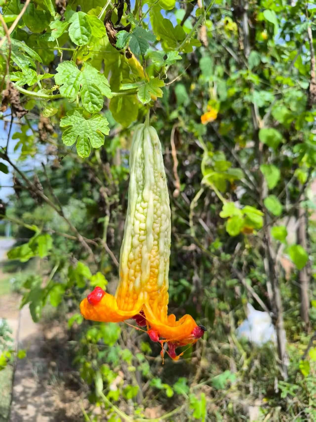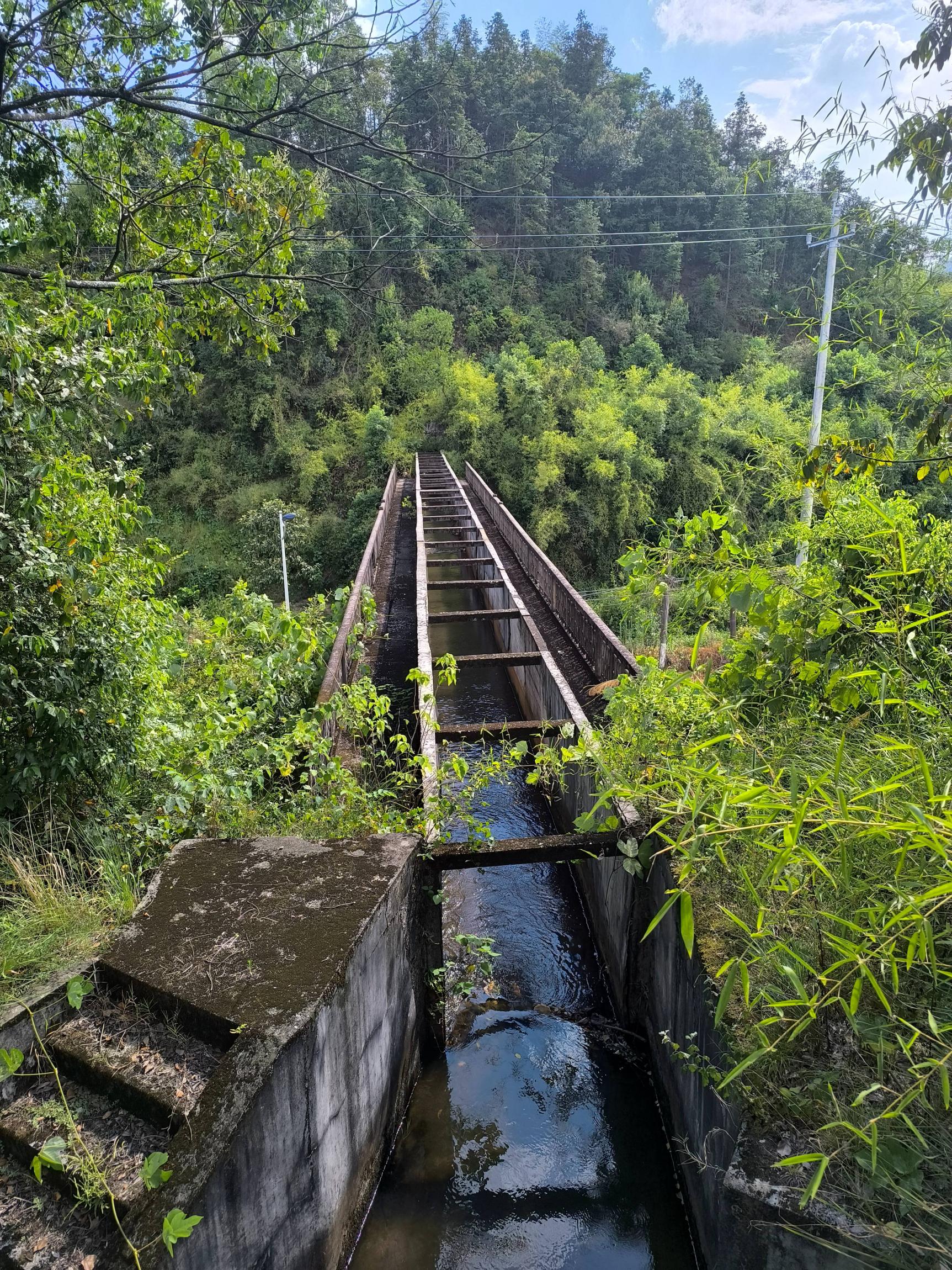 开花的苦瓜在路边,卷嘴咋舌,庵后一片生姜绿意盎然,土路从这里开始,灰尘随脚上裤,高一脚,低一脚,似烈日爆头,推动行走。山谷美景是回忆,左右两边杂草有两三米高,白石洞水库一角,干涸露出石桥,喇叭发声,提醒不要进入此区域,脚步催凑着加快,以往路中搭木头才能淌水而过的地方,满是厚厚的泥灰,溪水干涸露出石床像马路,曾经见鱼虾处有一点点水,湿润的山谷美景被蓝天白云掩盖,遇一面包车大哥询问是否看到小山羊,估计觅一清凉处透气。