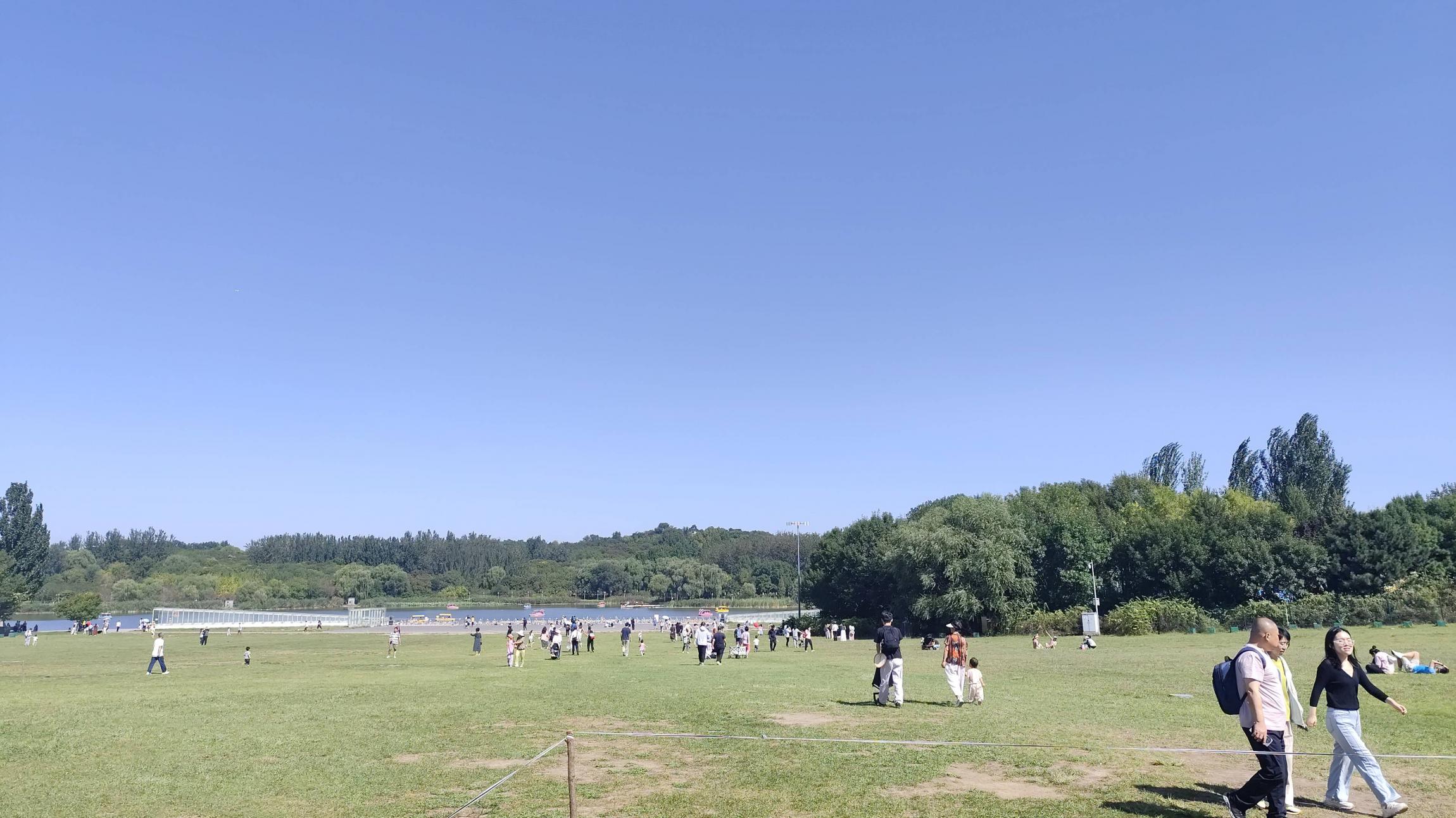 可能是“北京野外大本营”对野外人的吸引力太强,左拐拐右转转,第一站还是来到了奥森,以前没骑车来过,这次注意到,中轴线大道可以骑车,奥森里面不让进去。车放外面,小兜一圈,昨天爬山回来就睡三个多小时,走着走着有些犯困,遂斜倚在一个长椅上,开始时候觉得不雅,后来还是躺平了,眯瞪差不多半个钟头,不错,中午跟自动售货机买了一瓶可乐、一瓶脉动,找块石头,解决午餐,公园里还有直饮水水龙头,可以接水,但水瓶只能躺着放斜着放,永远接不满。