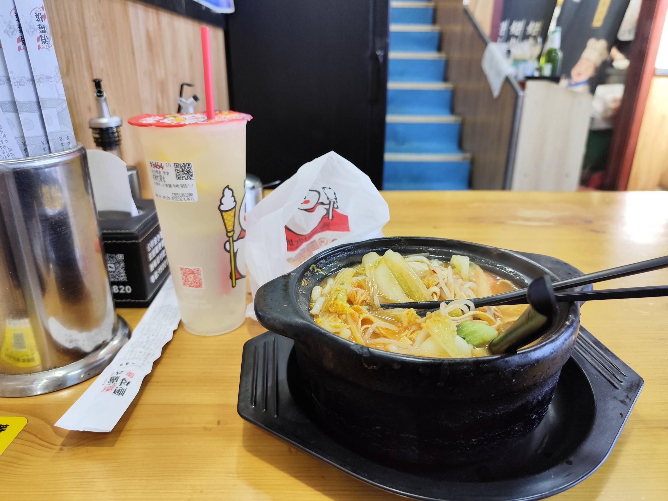 终于解决了天大的麻烦,骑上车准备回城,现在时间已经七点多了,得先吃顿晚饭。后沙峪这边是新区,有烟火气的地方不多,推车过来的时候注意到南侧街边有个好想来(一看到好想来就想起艾山……),旁边有些底商,骑车过去,找了家川渝家常菜米线馆,点了个娃娃菜配蟹棒米线,微辣,端上来,发现怎么是BT的辣,辣气熏得嗓子冒烟,立马小跑出去,上蜜雪冰城买了杯冰柠檬水,冷热中和,完美。