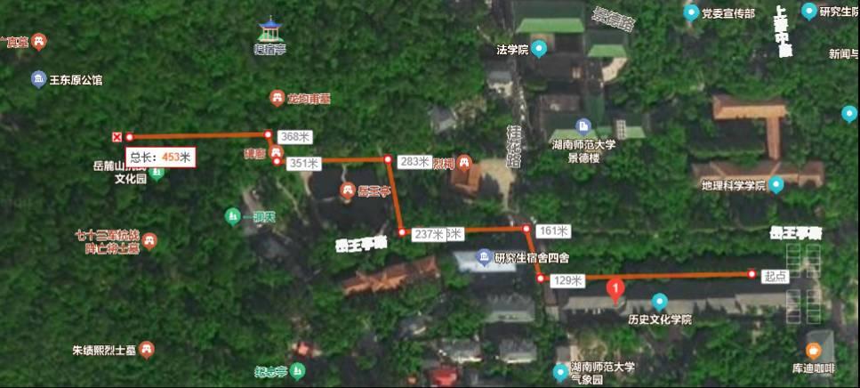 到达湖南师范大学地铁站,出站右拐,准备从二里半走小径上山,结果前期准备的大概上山点发现,路型和通道和预估的偏差非常大。在师范大学宿舍区域转了好多回头路。最后从二里半一个民宿后院的菜地“强攻”上山,大概位置是在师大宿舍124栋后山菜地。菜地还有狗子,拿棍子驱赶后,开路刺篷后上山找到方位。