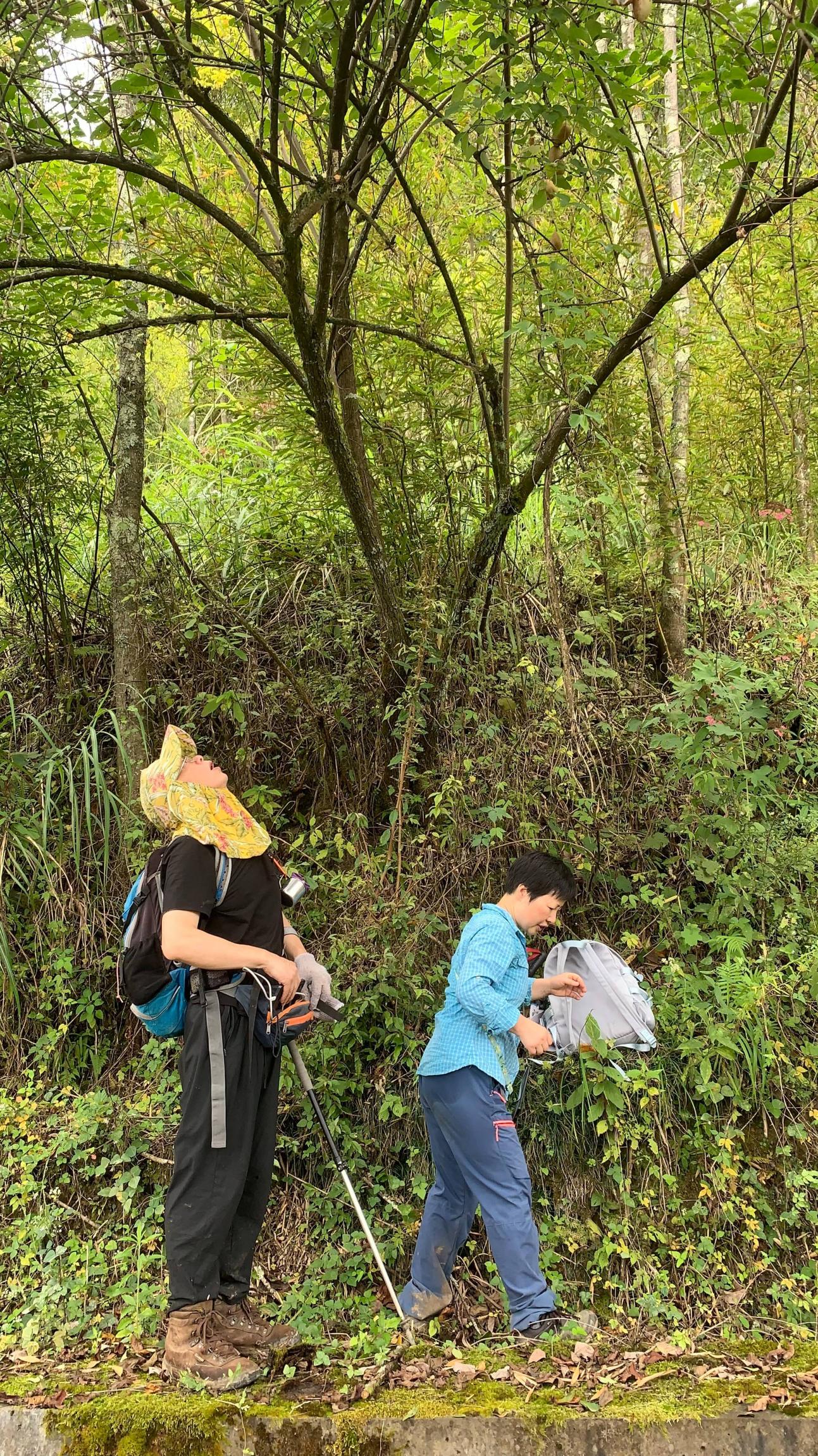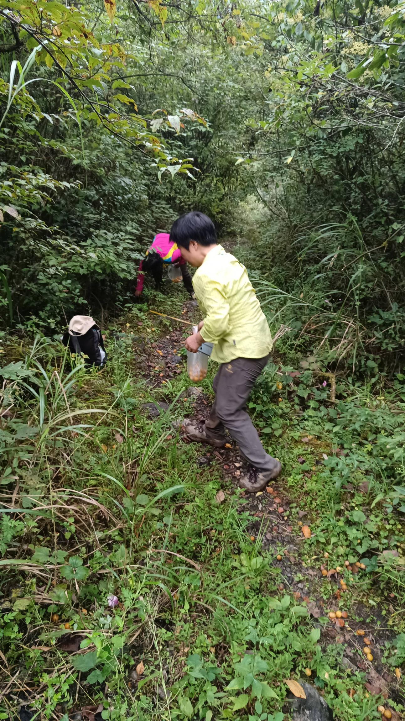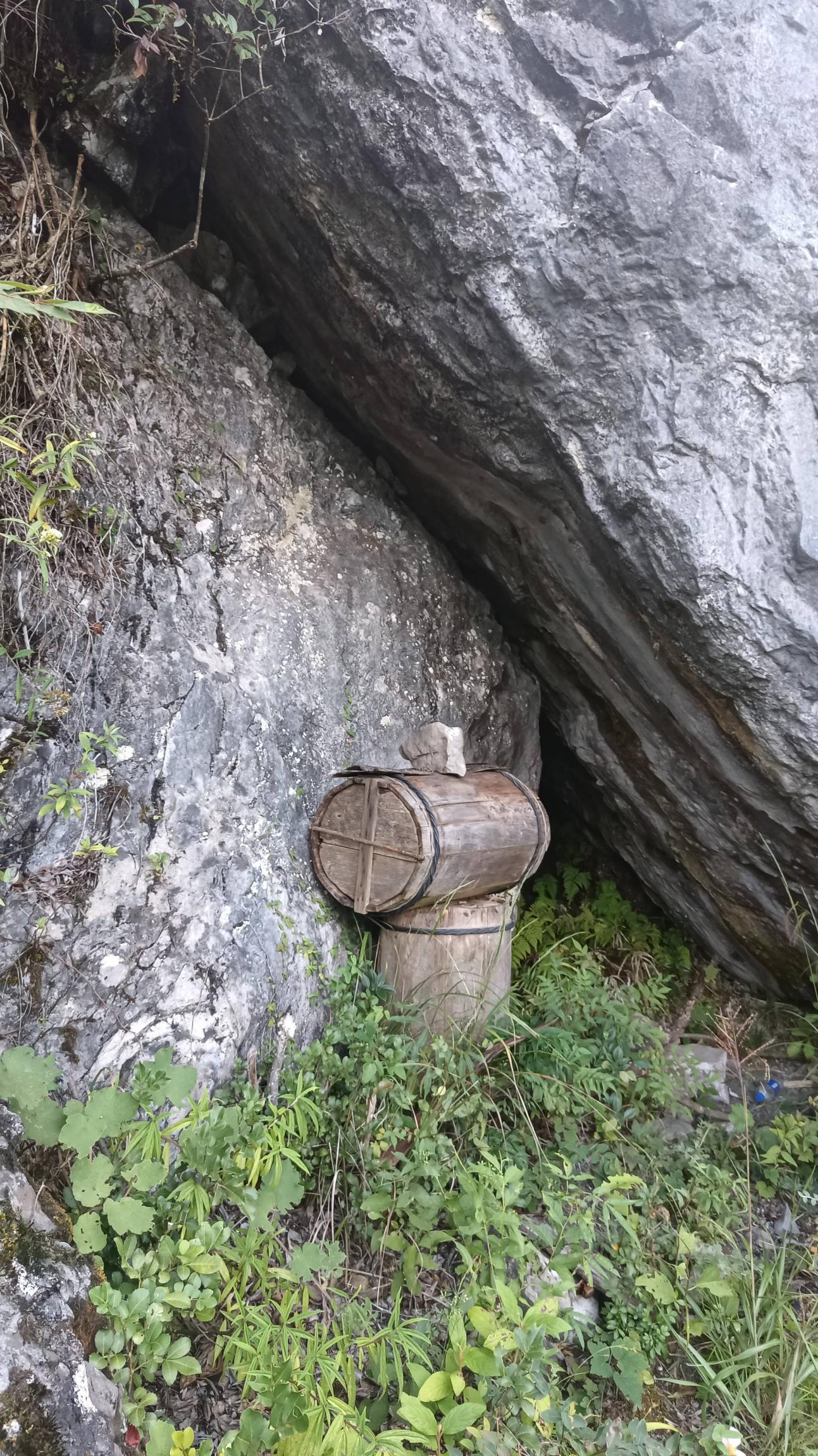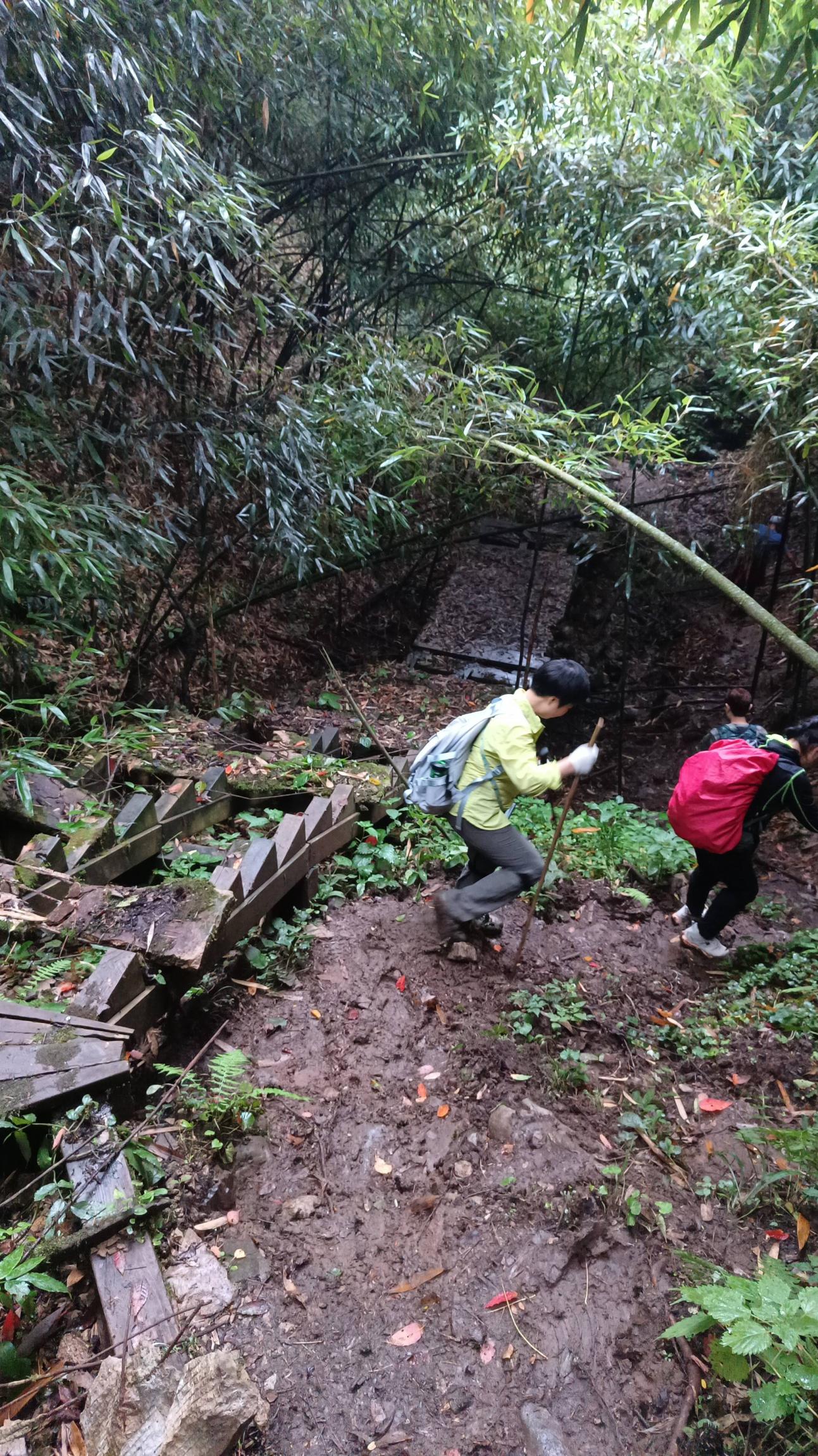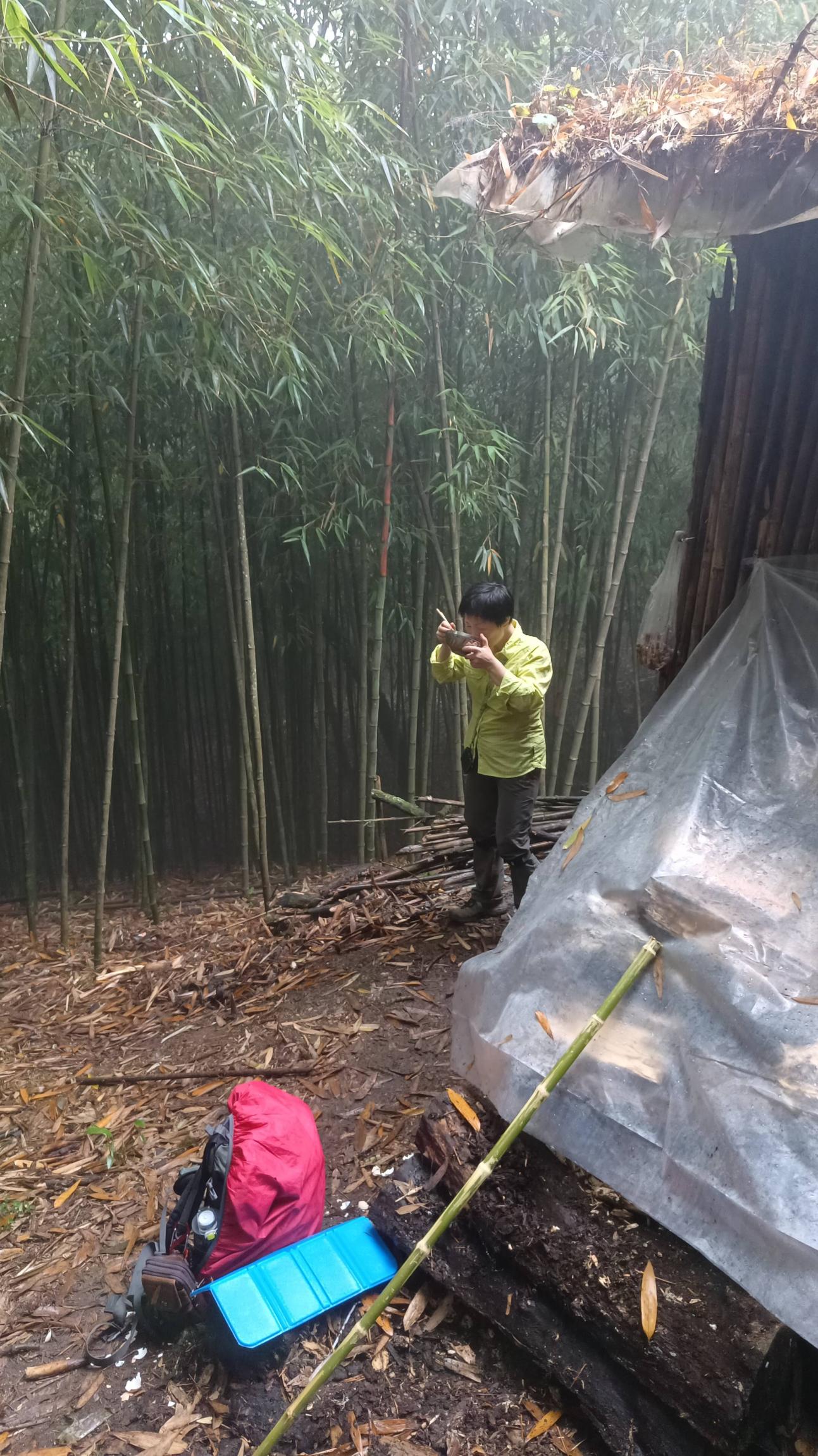 我们探索一会儿,准备穿洞而过,由于洞壁又窄又滑,安全起见,原路返回,爬升2000米左右,在一笋棚人家吃路餐,小雨他们居然在棚子里面,吃上方竹笋煮新鲜菌子和腊肉,原来小雨他们用自己带的鸡蛋和可乐交换的。