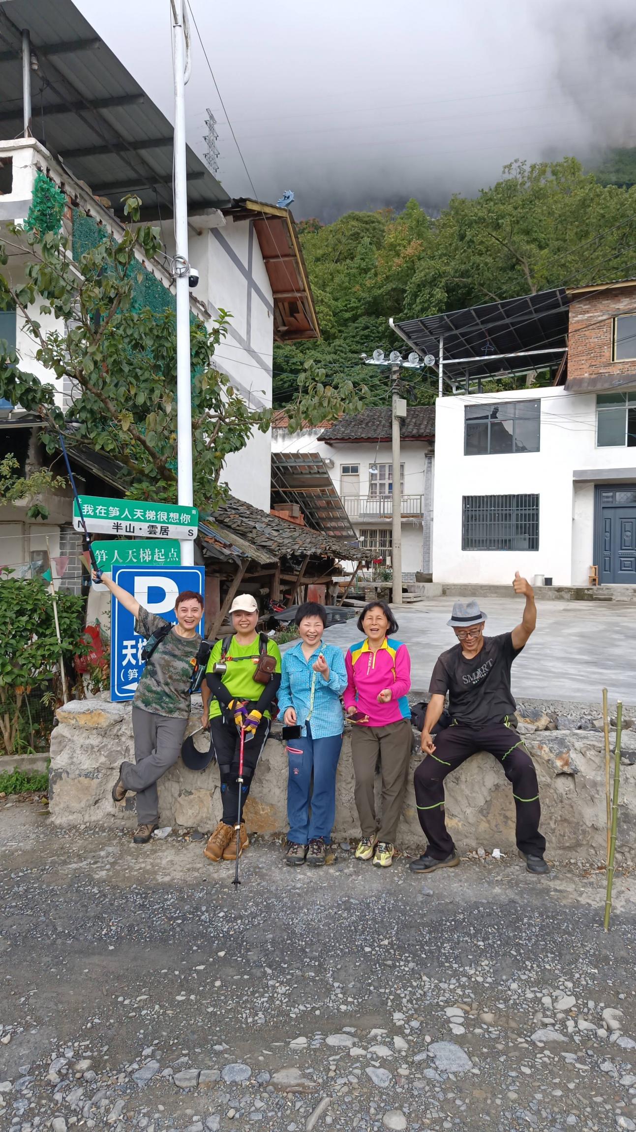 民宿到徒步起点有6公里,多方打探租车最少要180元,确得太贵,改成徒步,与当地老乡确定有小路,但是没有轨迹及具体里程数,起步就是直线上升,加之走的早,速度也快,有的伙伴没有适应,十分钟后就大汗淋漓,心跳加速,气湍不止,1.5公里直线上升近300米,给大家一个下马威。笋人天梯起点在民宿前面。