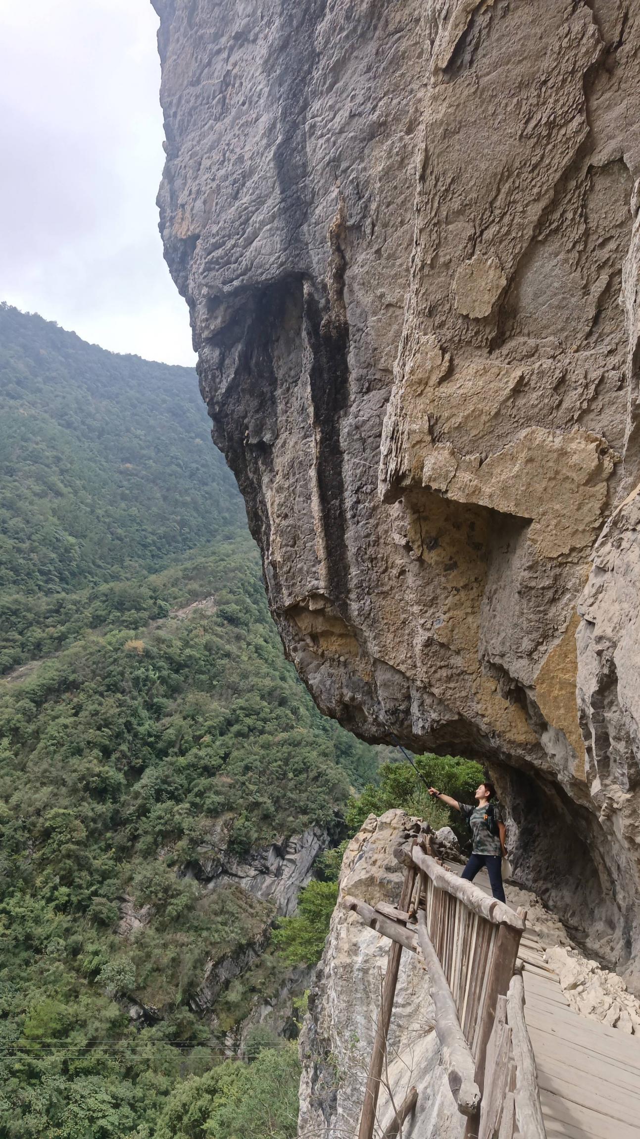 接着又是直线爬升,一直升到悬崖峭壁边上,