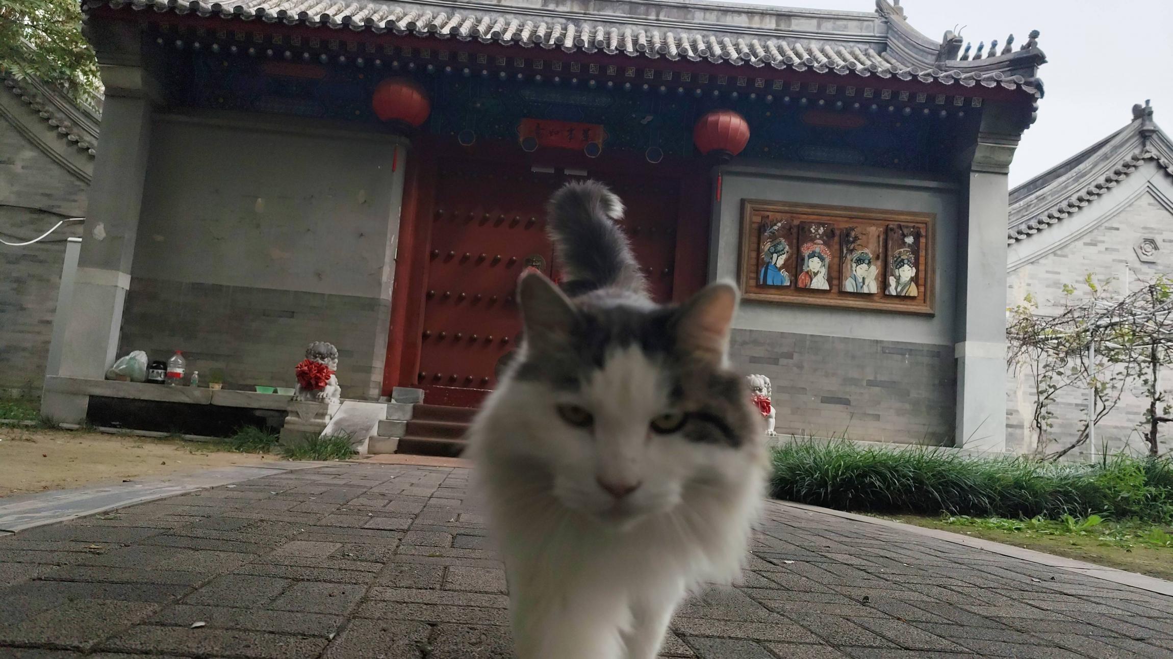 接下来去高粱桥娘娘庙,在转河边上,一圈围墙,入口在南侧,这座庙比较新,只是普查登记文物,看建筑也是近些年重修的,看门的奶牛猫倒挺老,毛发粗糙,眼神也没有亮了,城里的老猫一样靠卖萌度日,181一过来就疯狂喵喵叫,可惜一点吃的没带,给老猫拍了几张帅照,就走人了。骑车没走多远,后轮一阵刺刺拉拉又好像放屁的声,下车看,轮子有点瘪,以为是触怒了猫神,又把怨气撒在了这辆假捷安特上,抱着侥幸心理,又骑了几分钟,从西直门外骑到了西直门内,骑行体验没怎么变差,刺刺拉拉声时有时无,扒拉了一下腰上系着的冲锋衣,这才查明真相,亏气是因为跟后沙峪换来的轮组本来就没打气,刺刺拉拉是因为冲锋衣耷拉在后轮上了,把冲锋衣一解,装进背包里,问题完美解决!