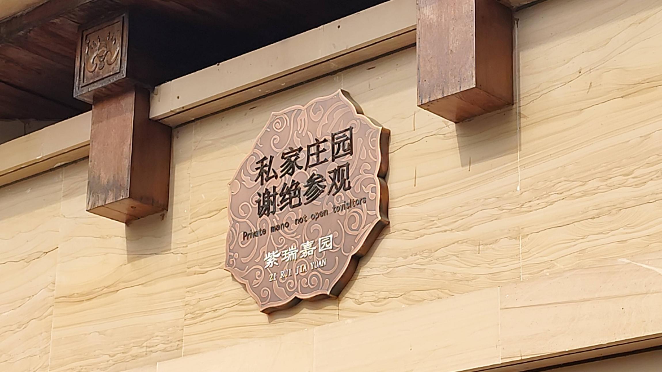 出气象局大院东小门,即与极乐寺咫尺之遥,看见了一个“极乐寺北路”,满心欢喜,又见着了一个“极乐寺西路”,胜利在望,看见一个小门,下车,进去,穿过一小片绿地----等等,这是“极乐寺东路”?再走走。欸?这怎么又回到了“极乐寺北路”?核对卫星地图跟极乐寺地标的准确位置,发现地点应该是在这个高档小区中间,走到正门,见一块牌子,写着是“私家庄园,谢绝参观”,“参观”用词极妙,看来庄园主早就知道我们这些不速之客都是来干嘛的了。