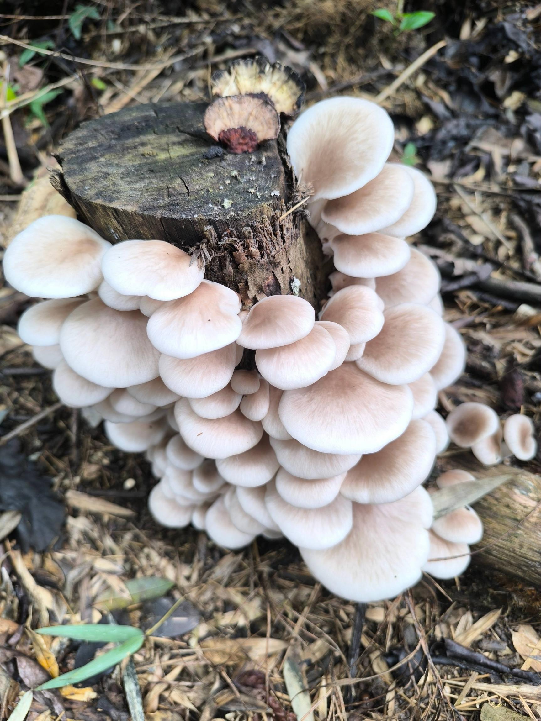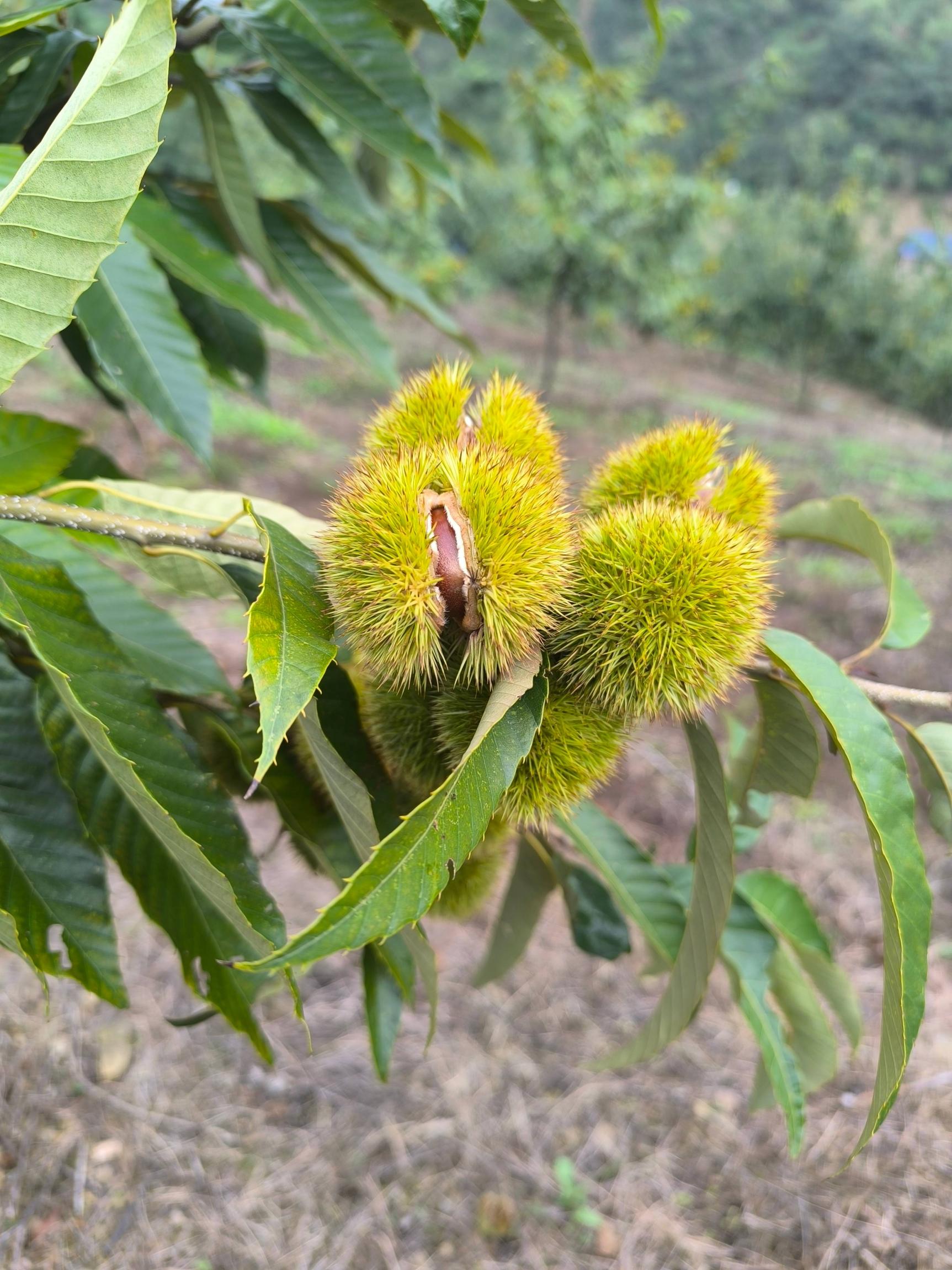 下山约500M,此时已近12点,有人建议路餐,于是择一处空地休息。路边竹林里长满了各种各样的菌类,知识匮乏的我是一个也不认识,只能手上拍拍拍,嘴里美美美。按照品斋老师的轨迹是要沿水泥路下行至黄浒洞村的,可是眼前的这条小路显然有人清理过,我决定先探一探路,一个人走了大约400M,一直是朝着黄浒洞村方向下行,我知道大概率是可以走通的,黄浒洞村的人也需要来进香的嘛。于是一行人下行来到了一处板栗园,老板有剥好的锥栗,一番讨价还价后,狠狠的拉动了一下社港经济。
