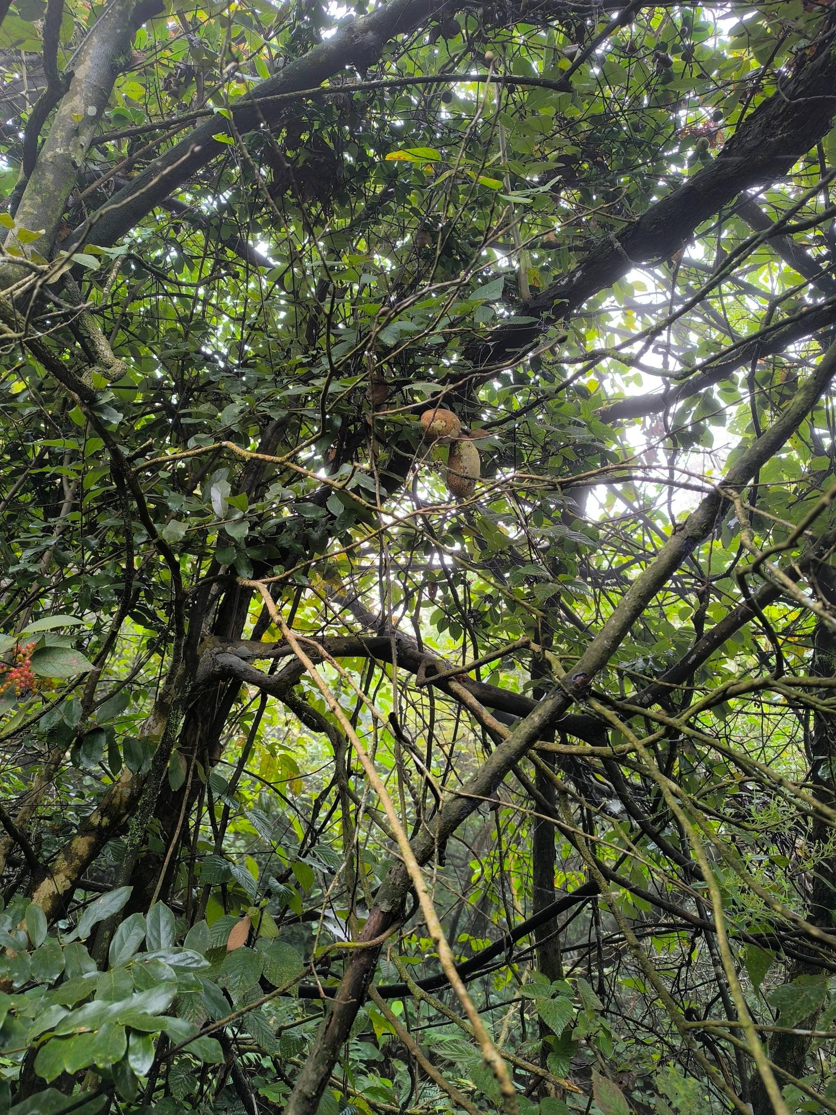 快到山顶时又一次看到了八月瓜,自在鱼的“这次不摘,下次来就没了”涌上心头,我感觉这句话的魔力仅次于“同志们,党和人民考验我们的时候到了”,后一句令人肾上腺素飙升,血脉偾张,前一句令人摩拳擦掌,必须找棵树爬爬。我上去摇了两下,掉落了几枚,还有一枚藏在叶后,怎么也看不清,换彻道者用竹竿捅,最终收获7枚。