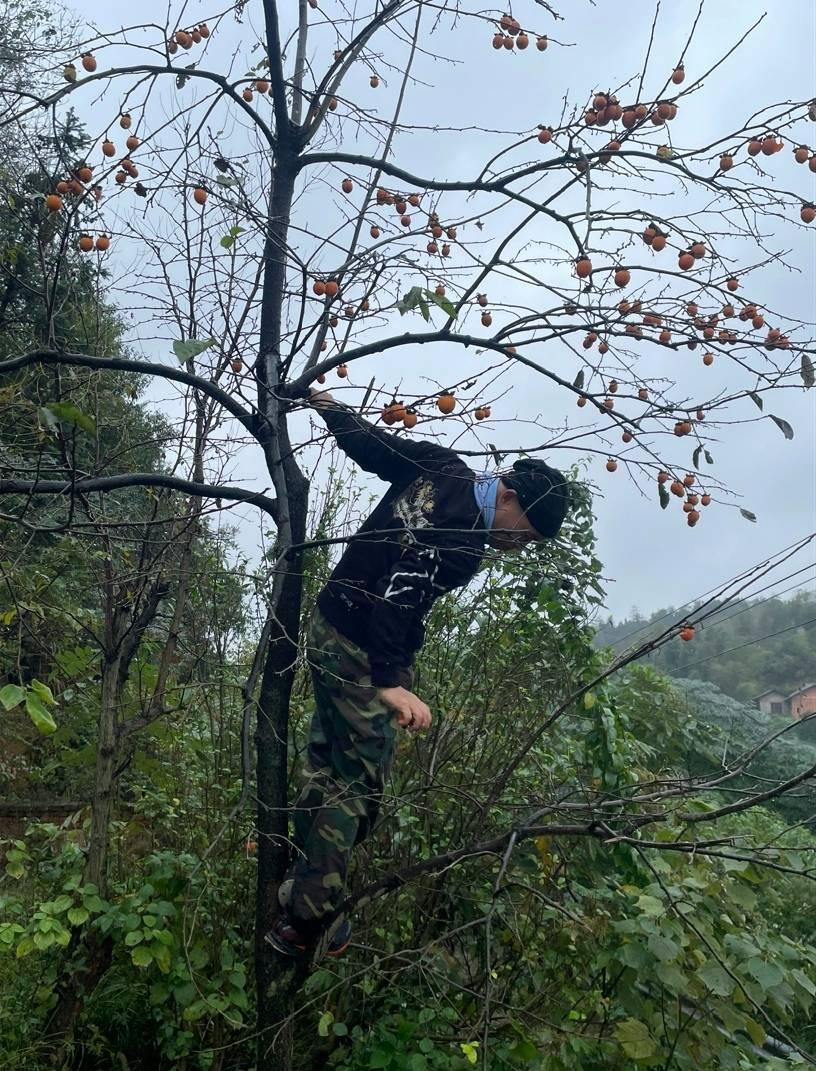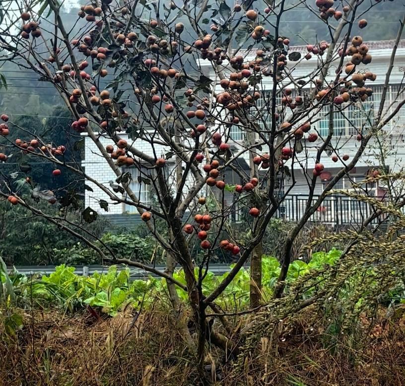 这样做的成果是发现了好多柿子,红色的果子,在湿漉漉的山林里非常醒目。
