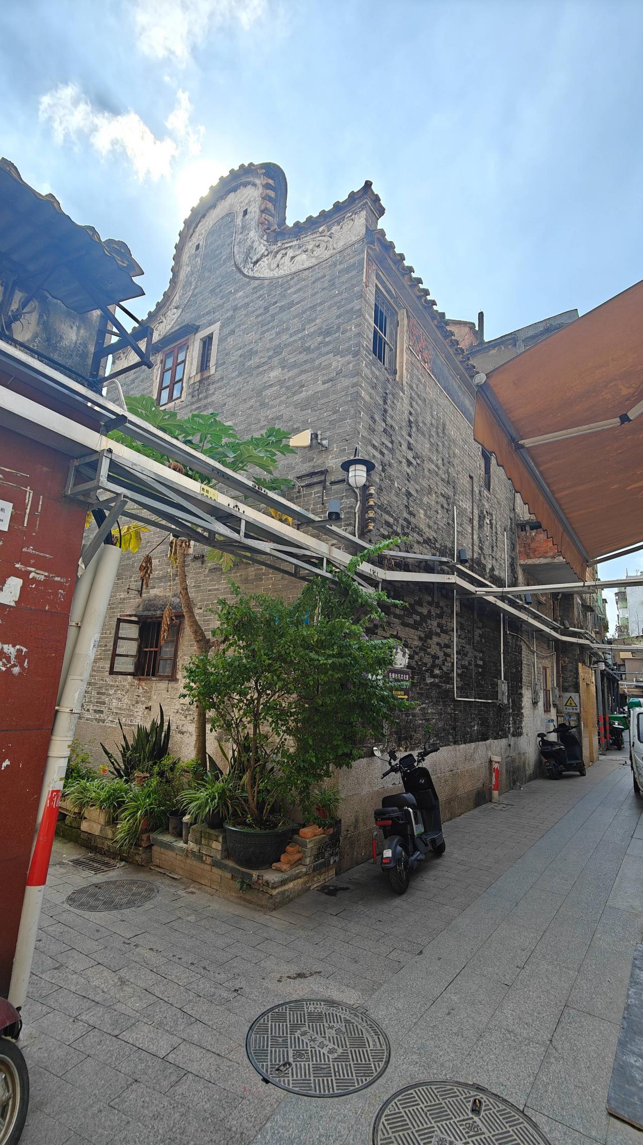 来到了先锋社区。先说下为什么叫做先锋社区,是因为解放番禺首先来到的这个地方,所谓先锋队,所以改了名字。其实我猜想,这个地方应该是非富即贵的人住的地方。看看这些老宅。