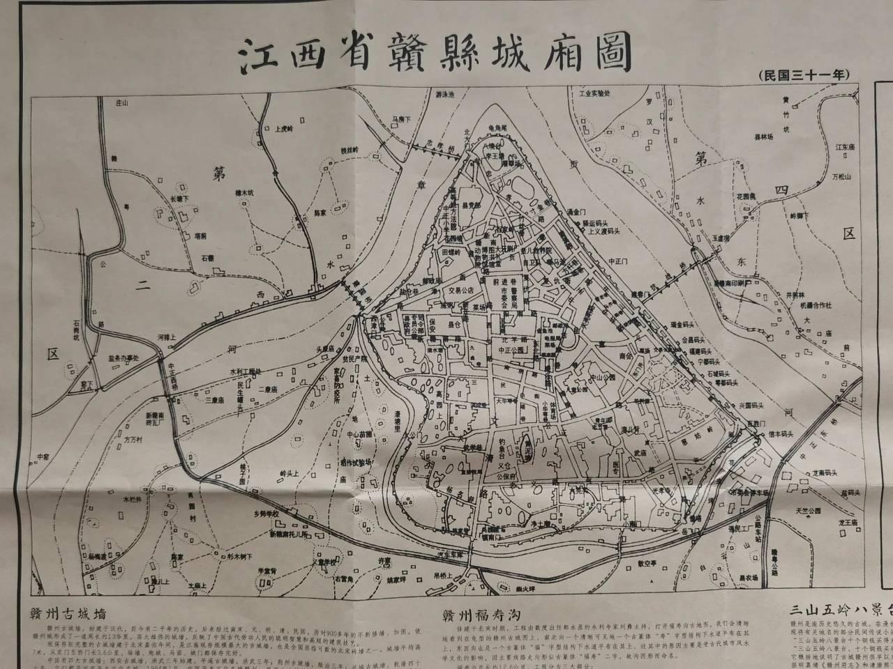 摊开清同治11年<赣县志>中描绘的赣州城市区,很容易寻找到今日南门口的位置。南濠沟引来滔滔贡水,宽阔的教场毗邻着关帝庙、马王庙,古城独有的吊桥横跨濠沟,中间一座高大的城门雄踞于古城墙上,另一座城门则在山底下与繁华的城区联贯着,这万夫莫开的雄关就是昔日的赣州镇南门。